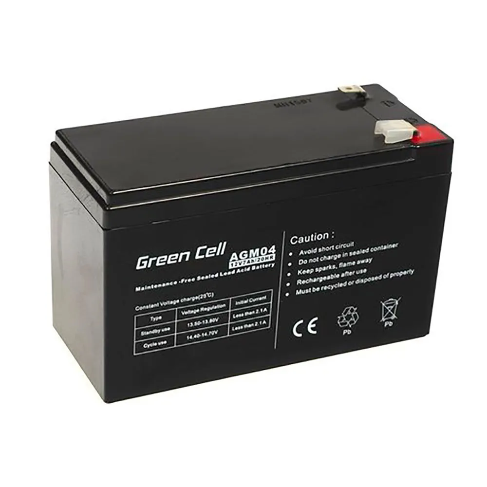 Green Cell is a quality brand that specialises in top class power supply that satisfies even the most demanding user. The range includes a wide range of power supplies for mobile devices such as laptops and smartphones. The blend of high quality material and state of the art technology is the reason why the batteries and power supplies from Green Cell have been unrivalled for years, which has also been proven by several independent tests. Original Green Cell VRLA AGM Battery 12 V 7 Ah The battery from the Green Cell brand belongs to the battery group VRLA AGM. This type of accumulator is characterised by the use of electrolyte in the separator (fibreglass mat) between the lead plates, which are located inside the battery. The AGM accumulator also has an automatic compaction system with a disposable valve called VRLA. This opens when the gas pressure is too high and leads the gas to the outside, which prevents damage to the housing. Most commonly there are situations when the battery is overcharged. AGM technology has been used to manufacture these batteries. For this purpose, fibreglass mats were used, which absorb the electrolyte. Thanks to this solution, the maximum performance of the accumulator is increased and the current values and temperature resistance are improved. Technical data: Capacity: 7 Ah. Voltage: 12 V. Terminal: Faston 187 F1 Type: VRLA AGM Capacity (25°C): 20HR (0.35A, 10.5V), 7AH (10HR) (0.663A, 10.5V), 6.63AH (5.19A, 10.5V), 5.95AH (1HR) (4.05A, 10.5V), 4.05H. Dimensions: 151 x 65 x 94(98) mm Weight: 2 kg Green Cell Fresh Energy High-quality AGM battery from Green Cell High discharge current, possible buffer and cycle operation Solid construction thanks to high-quality materials Capacity: 7 Ah Voltage: 12 V.