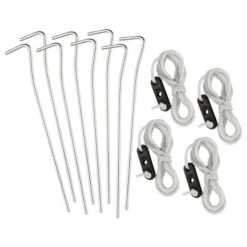 Contents packing fabric, 1 pole ø 7.9 mm, 2 poles ø 7.0 mm, 8 pegs, 4 guy ropes.