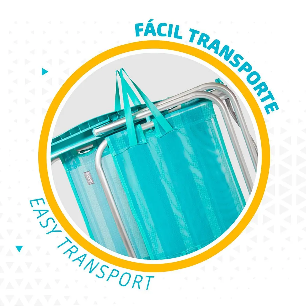 The seat height is 21 cm and it folds easily, resulting in a lightweight structure that can be transported like a briefcase thanks to its handles.