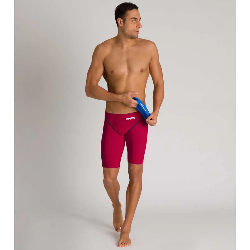 Get ready for Powerskin ST 2.0. These racing jammers for men have better resilience, better compression and better stretch. We revamped our tech swimsuit for racers and swimmers of all levels with three high-tech knit fabrics and a durable lining for optimal muscle support and freedom of movement. All seams are flatlock for a snug fit against the body, and the new ergonomic seam placement improves body and leg position in the water. Enhanced support and comfort plus a sleek finish make our newest Powerskin ST a high performance swimsuit with exceptional hydrodynamics. This FINA-approved design is a comprehensive racing and training solution.