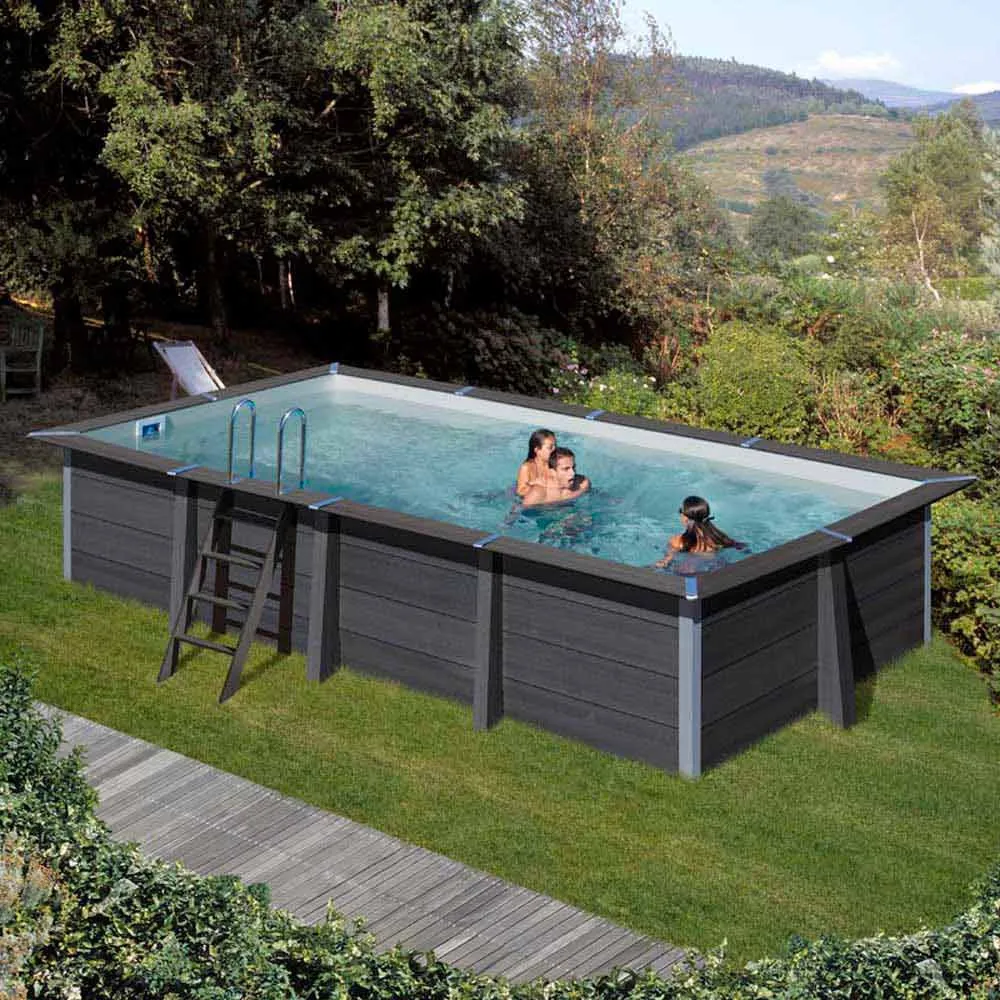 The range of composite pools from GRE has a cutting-edge appearance, not only because of its availability in different forms, but also because of the composition of its material: an alloy of wood and P.V.C.This pool range offers a perfect alternative to wooden pools. The Avantgarde pools have many advantages: simple assembly, material that maintains the water temperature and offer great durability. The kit carries all the components for assembly: panels, sand filtration, liner and stairs.