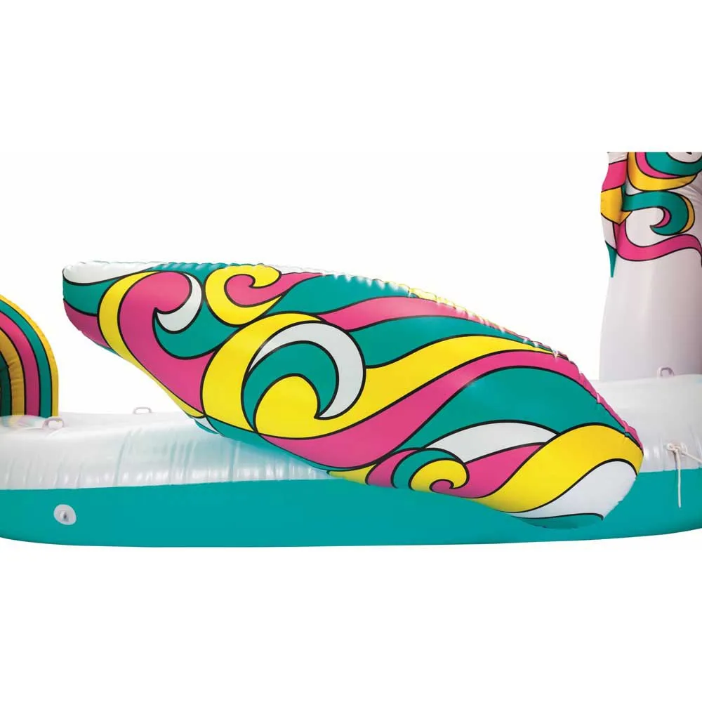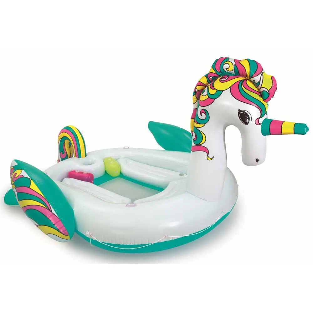 Have The Fairytale Summer Of Your Dreams With The Bestway® Giant Unicorn Island Spacious Enough For 6 People, This Enormous Unicorn Comes With 8 Cup Holders, An Ice Bucket, And Two Extra-Wide Backrests. It’S Super Easy To Lounge On This Legendary Creature .There’S A Wraparound Grap Rope, Along With Heavy-Duty Handles And A Swim-Up Platform. Quick Release Valves Make Inflating And Deflating Incredibly Simple. The Giant Unicorn Island Will Be A Hit At The Pool, Lake, River Or Ocean