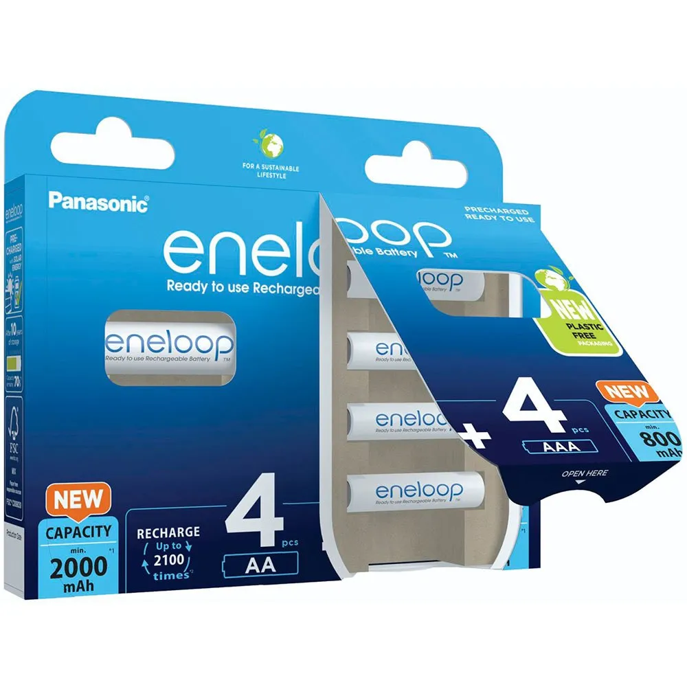 Set consisting of 8 Eneloop Ni-MH rechargeable batteries.