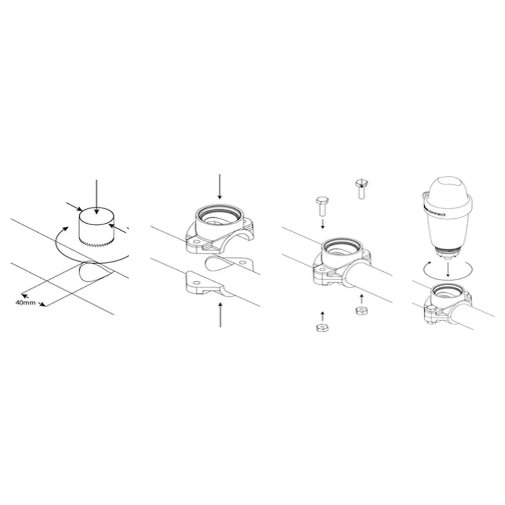 – Easy installation in just 3 steps: fix the Blue Fit 50 in a rigid pipe with a diameter of 50 mm, put the hose clamp and finally screw the Blue Connect device to the hose clamp.