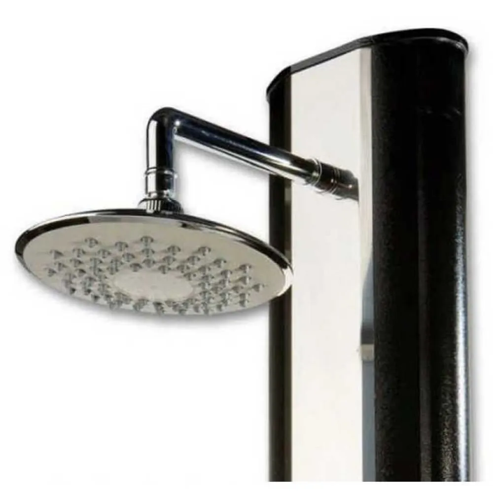 DE LUXE solar garden shower is a suitable addition to swimming pools, gardens and family houses. De Luxe aluminum solar shower has a modern to luxurious design. In addition, a foot rinse valve is built into the bottom of the body. This shower also delivers a luxurious touch to the fixed shower tray. Water inlet to the garden shower is possible either via a hose quick connector (standard), or through a ball valve (not supplied), or. combination of both elements.