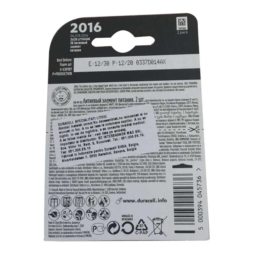 Duracell Specialized Lithium CR2016N batteries, 2 pcs.