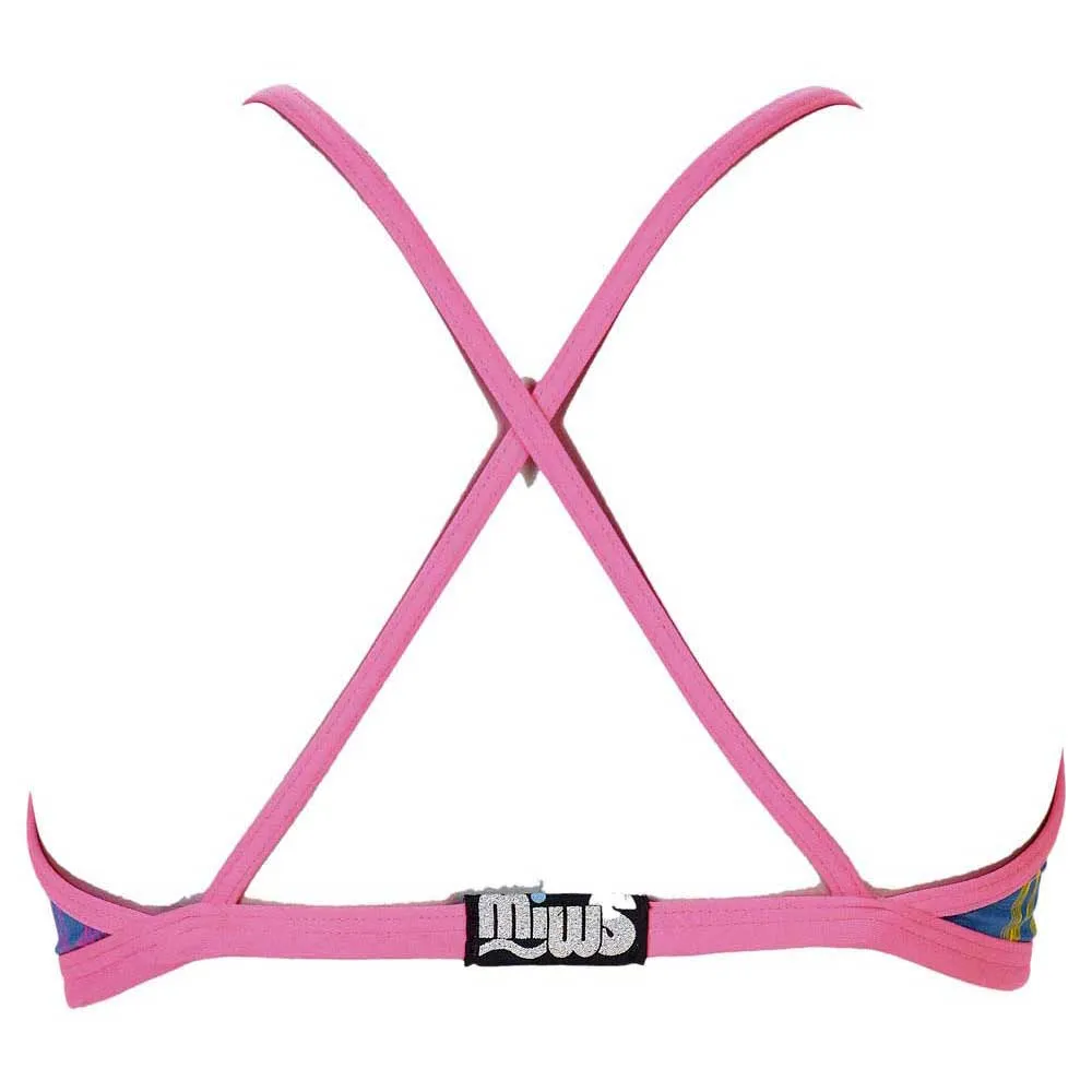 Swimsuit for woman made in one piece PBT, where tens of multi-coloured fishes they swim in a crystal clear water.