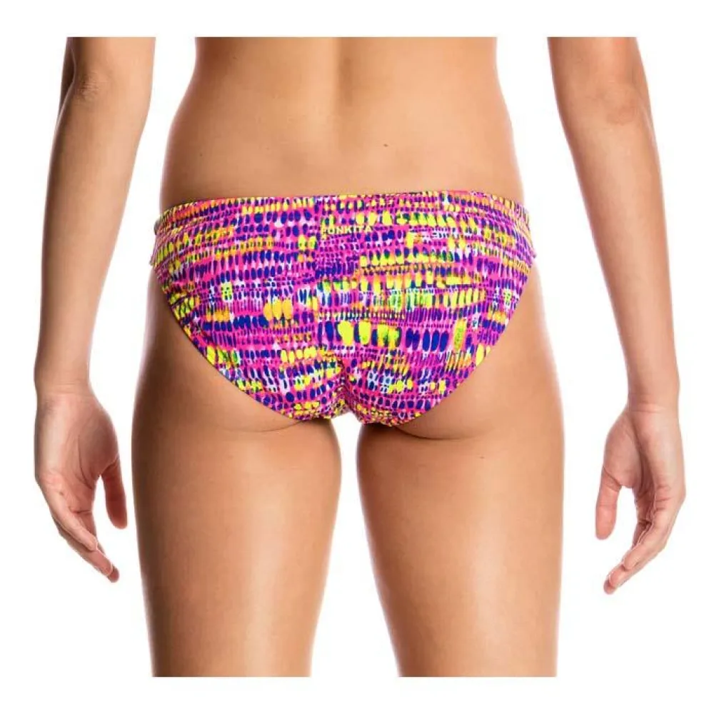A skinny brief with a 4cm side and firm rear coverage. Drawcord and smooth elastic around the waist and leg opening for added comfort.