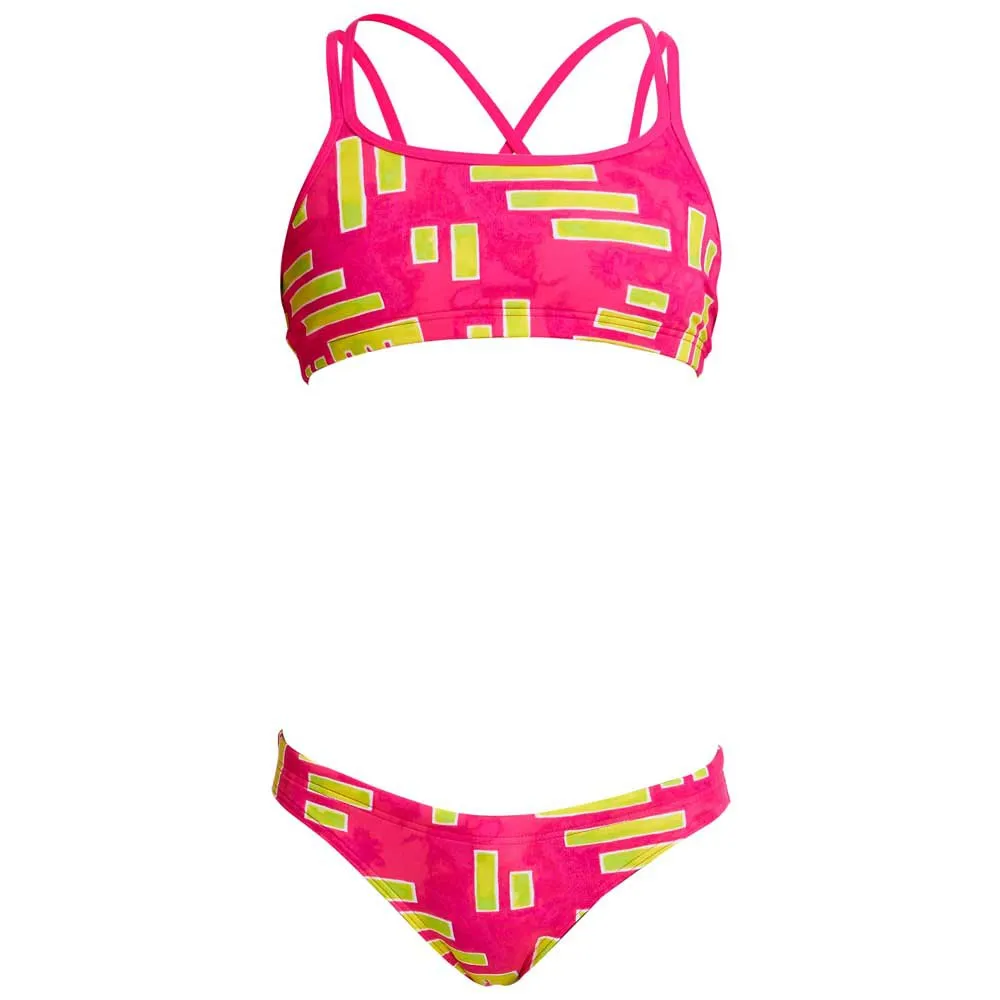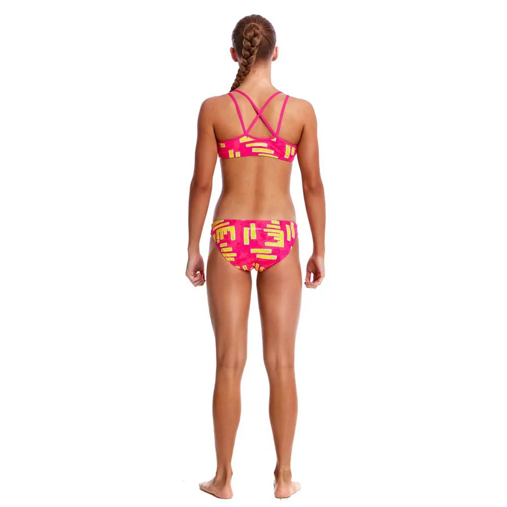 A double strap crossover back that provides added comfort and support for hours in the pool. Pairs back with the new skinny brief which provides firm rear coverage with drawcord.