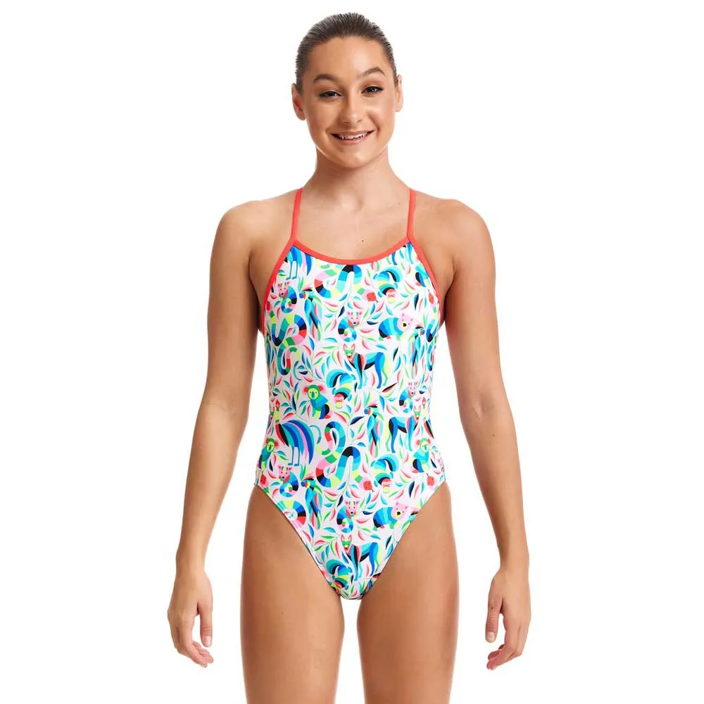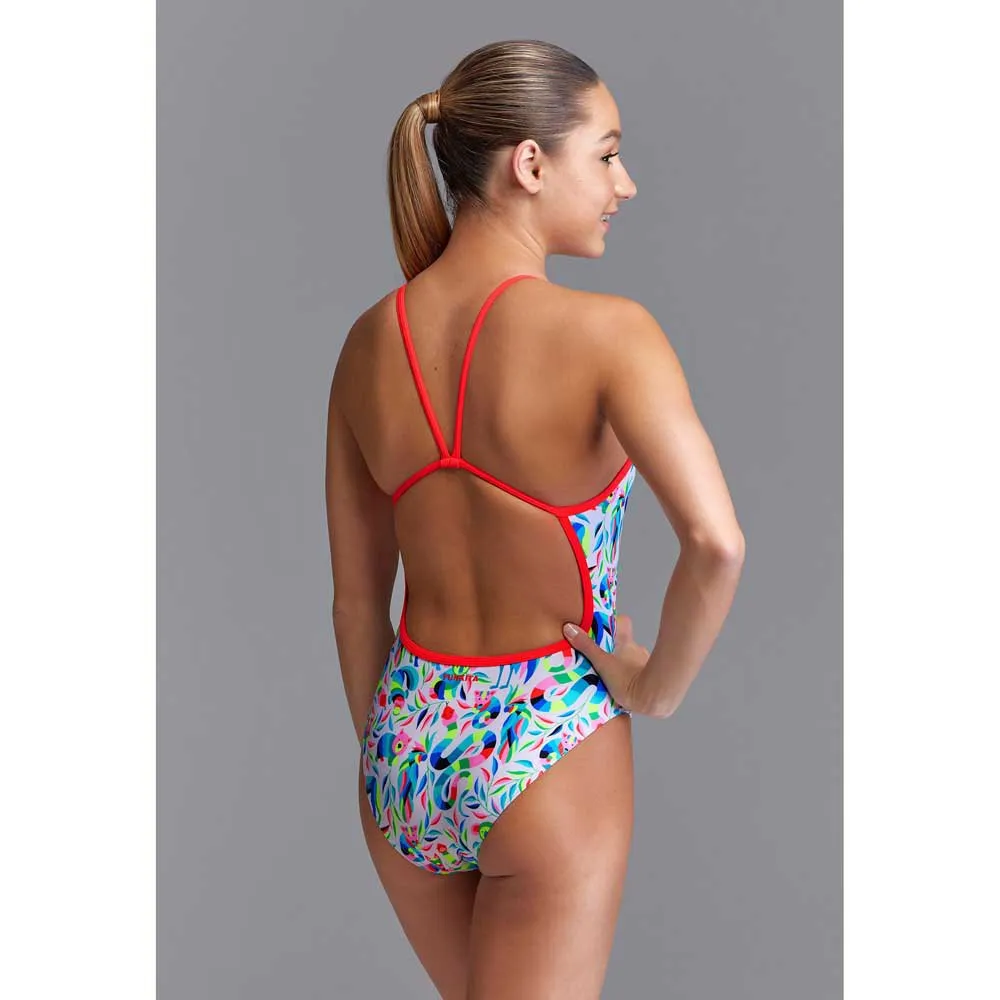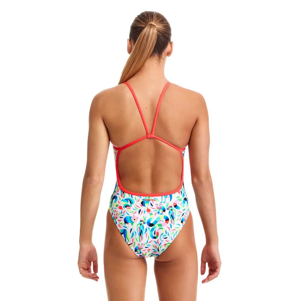 The perfect one piece if you love thin shoulder straps for freedom of movement and an open back to feel water gliding across your back.