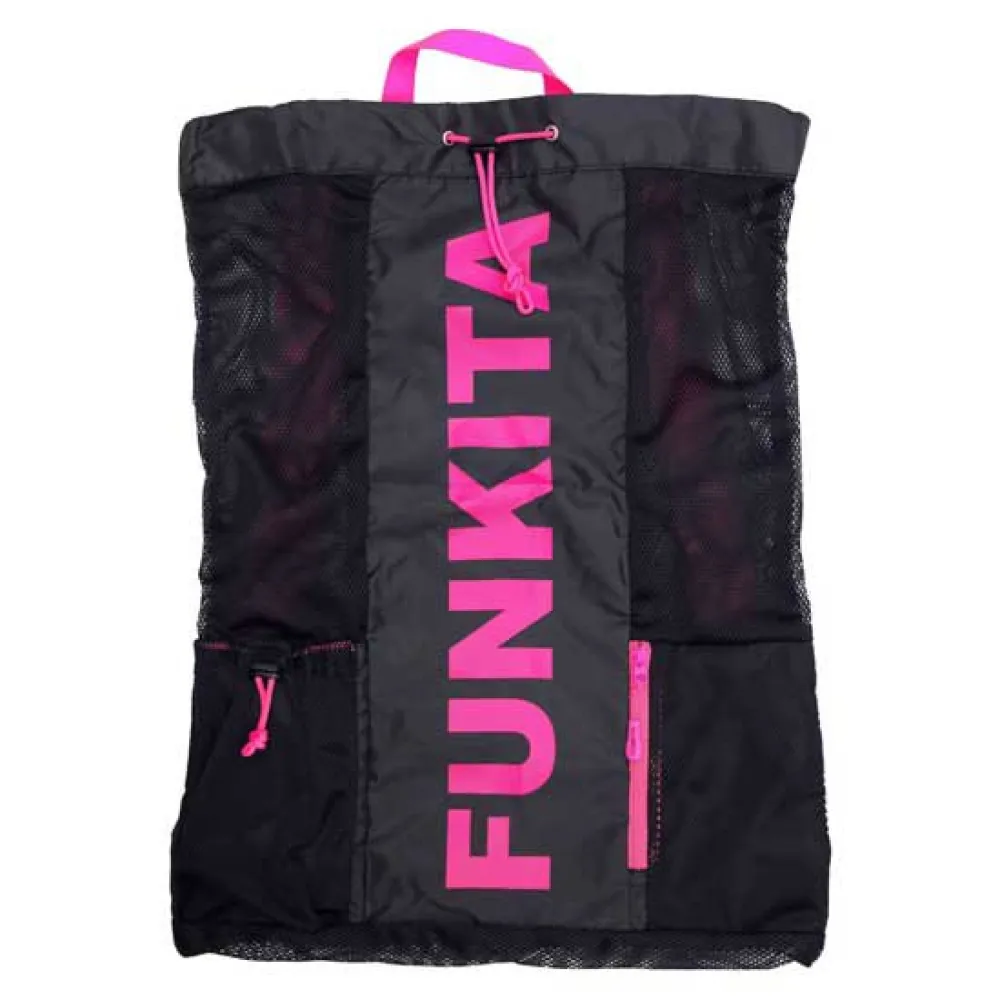 Carry and store all your swim training gear on pool deck in this versatile, spacious mesh backpack.Complete with a water-resistant pocket to store your valuables, pockets for your water bottle & goggles and reflective logos so you can be seen on the way to pre-dawn training. The drawstring opening allows for easy access, while the adjustable shoulder straps let you carry your gear with ease. Made from tough nylon & mesh that won’t have a problem getting wet and will be durable for the hours on pool deck while you train. Measures 64cm high and 47cm wide.