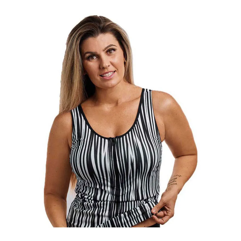 With mastectomy pocketing included, the zip feature creates a flattering neckline.