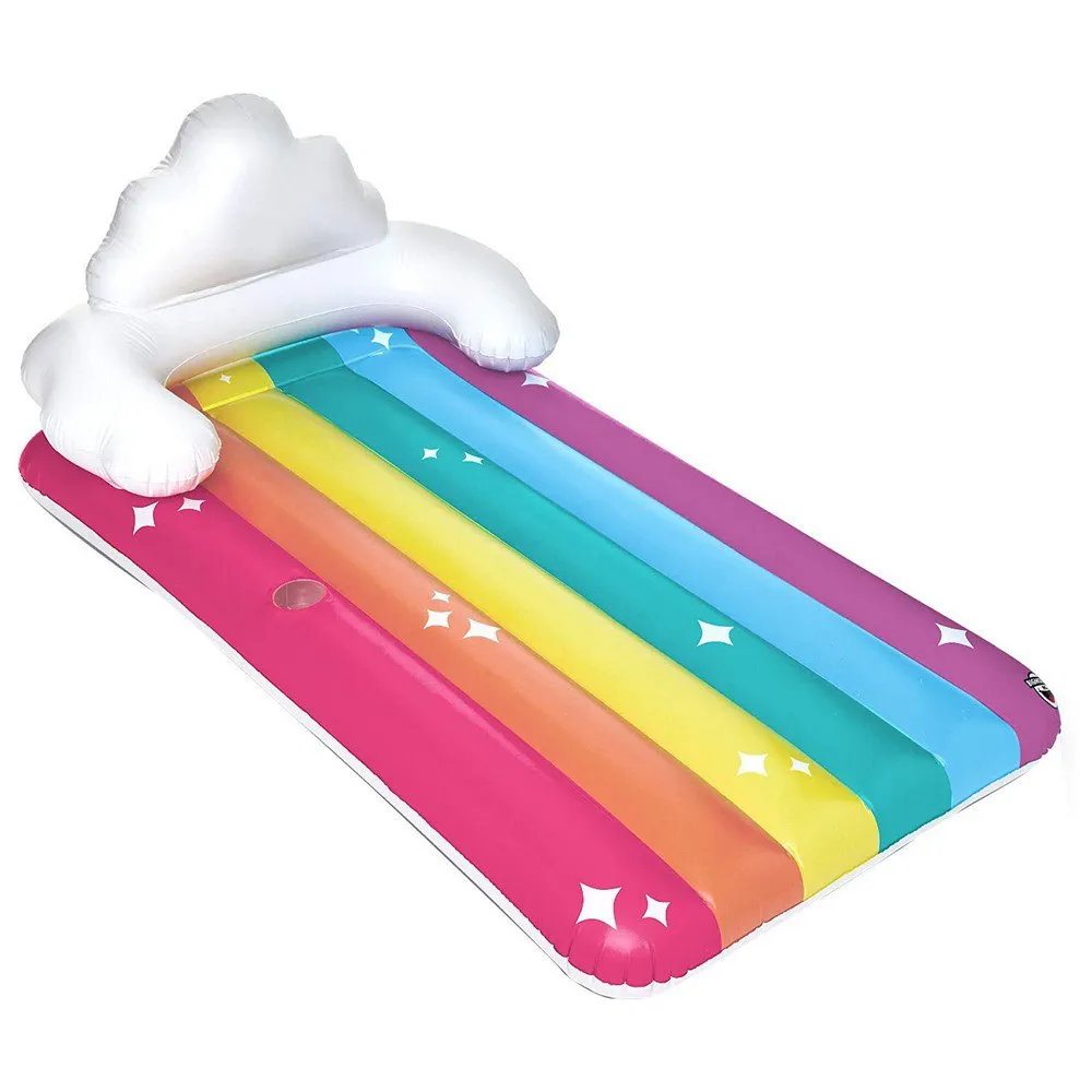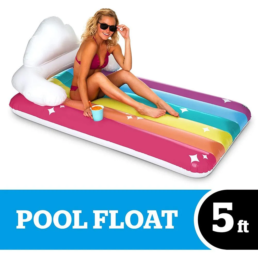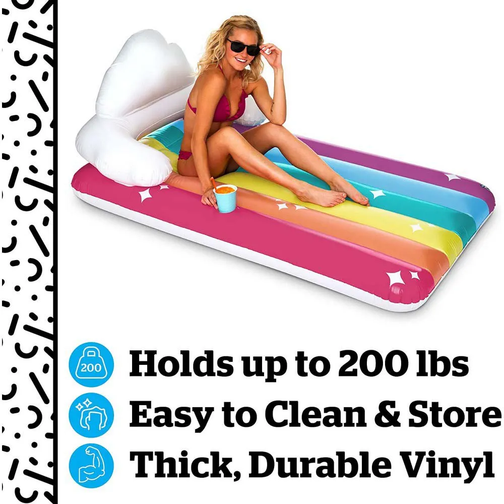This Summer, You Can Keep Your Head In The Clouds, Your Feet Kicked Up And Your Drink Right By Your Side. Toss Out That Memory Foam Mattress Now Because The 5-Foot Long Giant Rainbow Lounge Pool Float Is Going To Be Your New Bed. The Ultra-Comfortable Cloud Backrest Is Perfect For Catching Up On That Novel, Tabloids Or Sleep (We Won’T Judge). The Built-In Cup Holder Will Make Sure That You’Re Staying Hydrated Without Even Hopping Out Of The Pool.