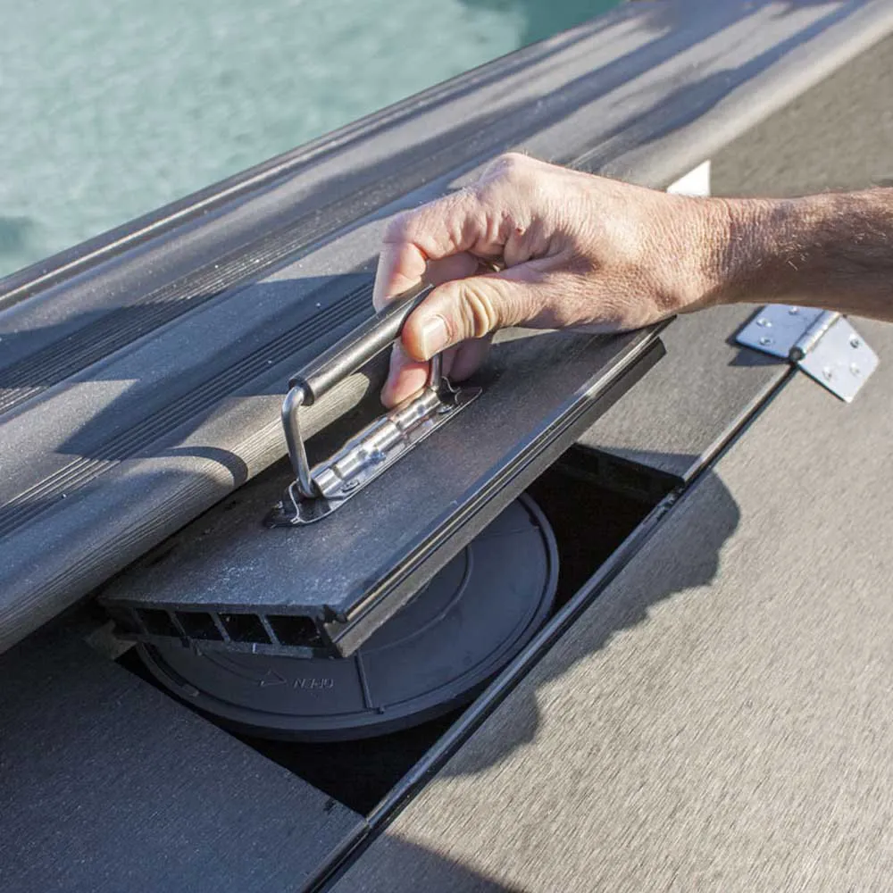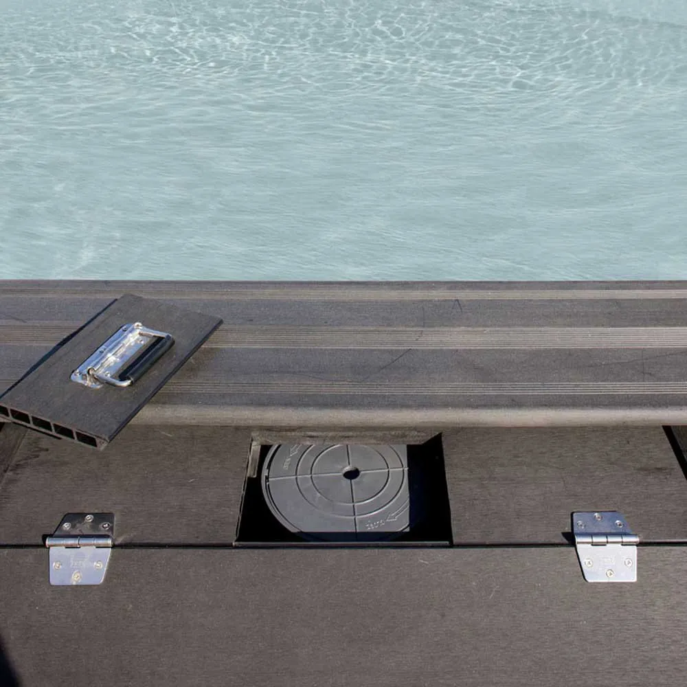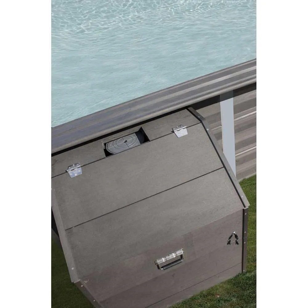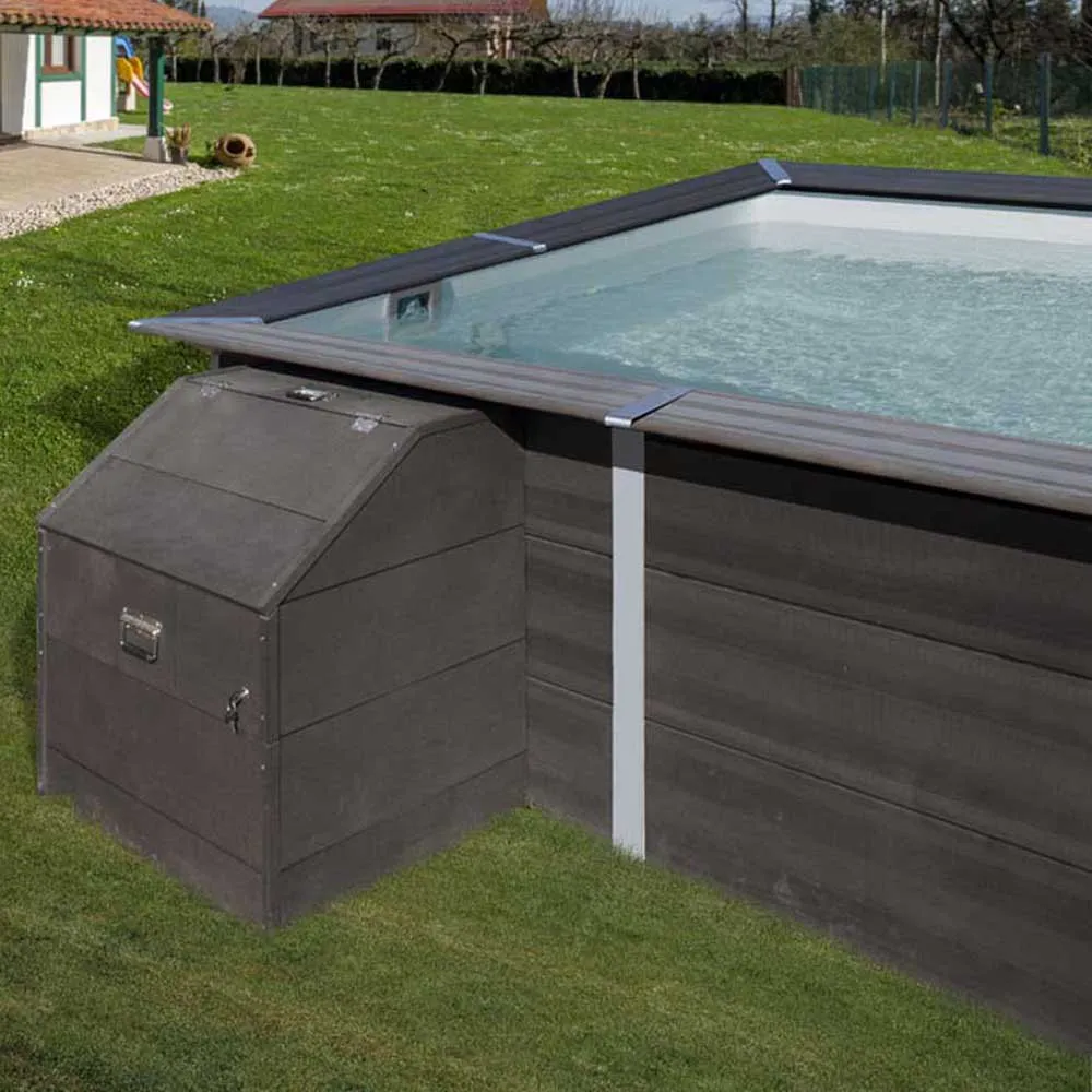 This range of composite cabins is available in a single height, which is perfectly suited to the height of GRE´s Avantgarde composite swimming pool range. These booths are designed to prevent different swimming pool accessories (filters, light cleaning material, pool cleaner, hose …) from being located outside, with the risks that this may entail. Additionally it is an aesthetic way of hiding these different accessories that usually remain in the garden. They can be attached next tothe pool or separated from it, as they have all the walls in order to accesories to be protected.