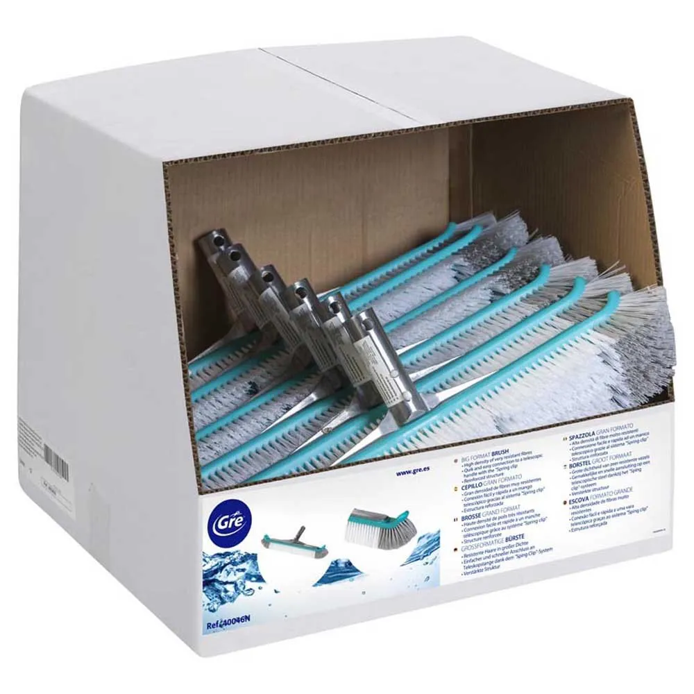 GRE brushes allow to clean in depth the detachable and in ground pools, both the bottom and the walls. The brushes of GRE range are designed with a fastening system (clip system or wing motifs) to connect with a telescopic handle, which makes possible to clean the surface of an entire pool without having to be moving around the pool. These brushes are available in various sizes, colors or materials to cover all the cleaning needs of the pool.
