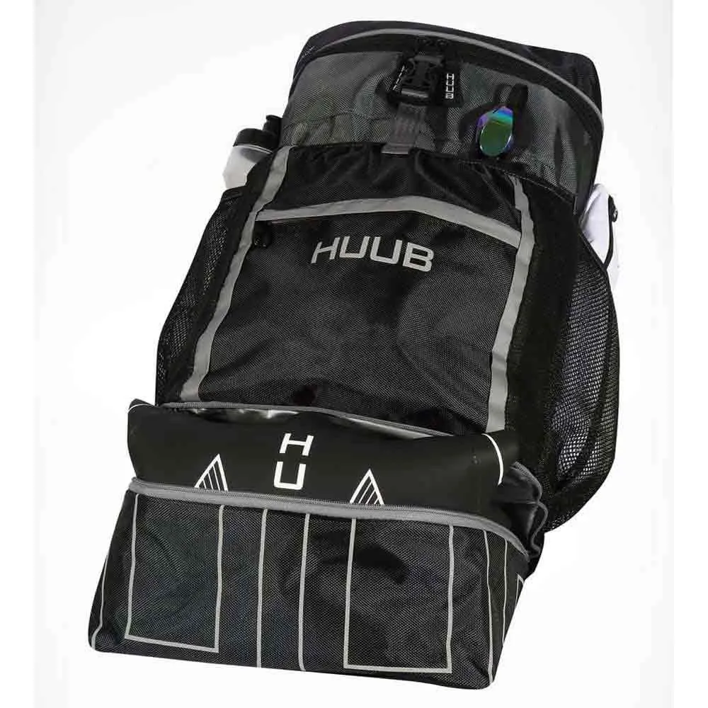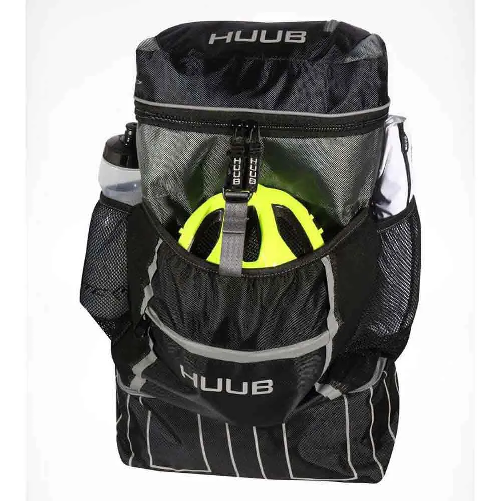 The triathlete´s favourite transition bag has had a revamp. The huge 40-litre volume bag stores all your triathlon kit – it features waterproof storage for HUUB wetsuits, storage compartments for shoes and helmets, and multiple pockets for all your other bits and bobs.