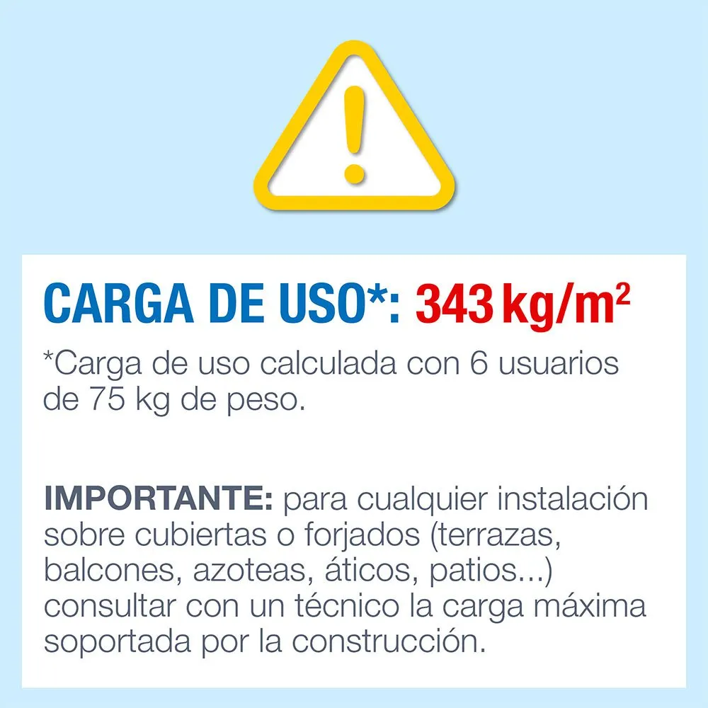 Complete your INTEX spa with the packs and add the accessories you need, tailored to you!- Have a relaxing bubble bath with warm water without leaving home in your INTEX inflatable spa, the best way to end or start the day!Material:Laminated PCV and liner with 3 layers, interior with INTEX FiberTech, greater strength, durability and rigidity for the entire edge of the spa – Interior diameter:165cm, exterior 216 cm and 71cm height, 1098 litre capacity, recommended for 6 people (8+ years), spa with 140 air outlets – With cartridge filter that filters 1,741 litres/hour, uses S1 filter (2 included) and is activated from the control panel, with anti-limescale system – Includes:insulated floor and cover with safety catches, floating chlorine dispenser, 2 S1 cartridges and transport bag