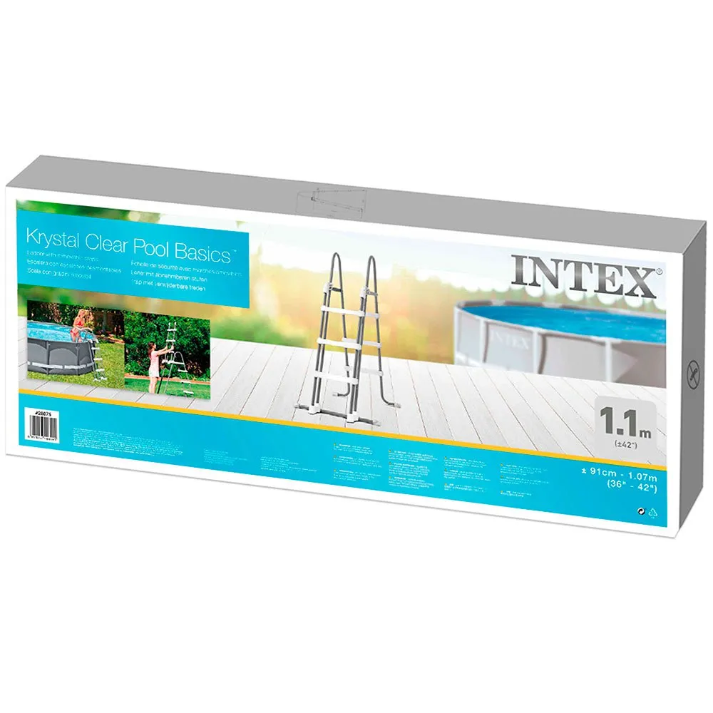 Intex safety steps for above ground swimming pools with minimum height of 91 cm and maximum of 107 cm.