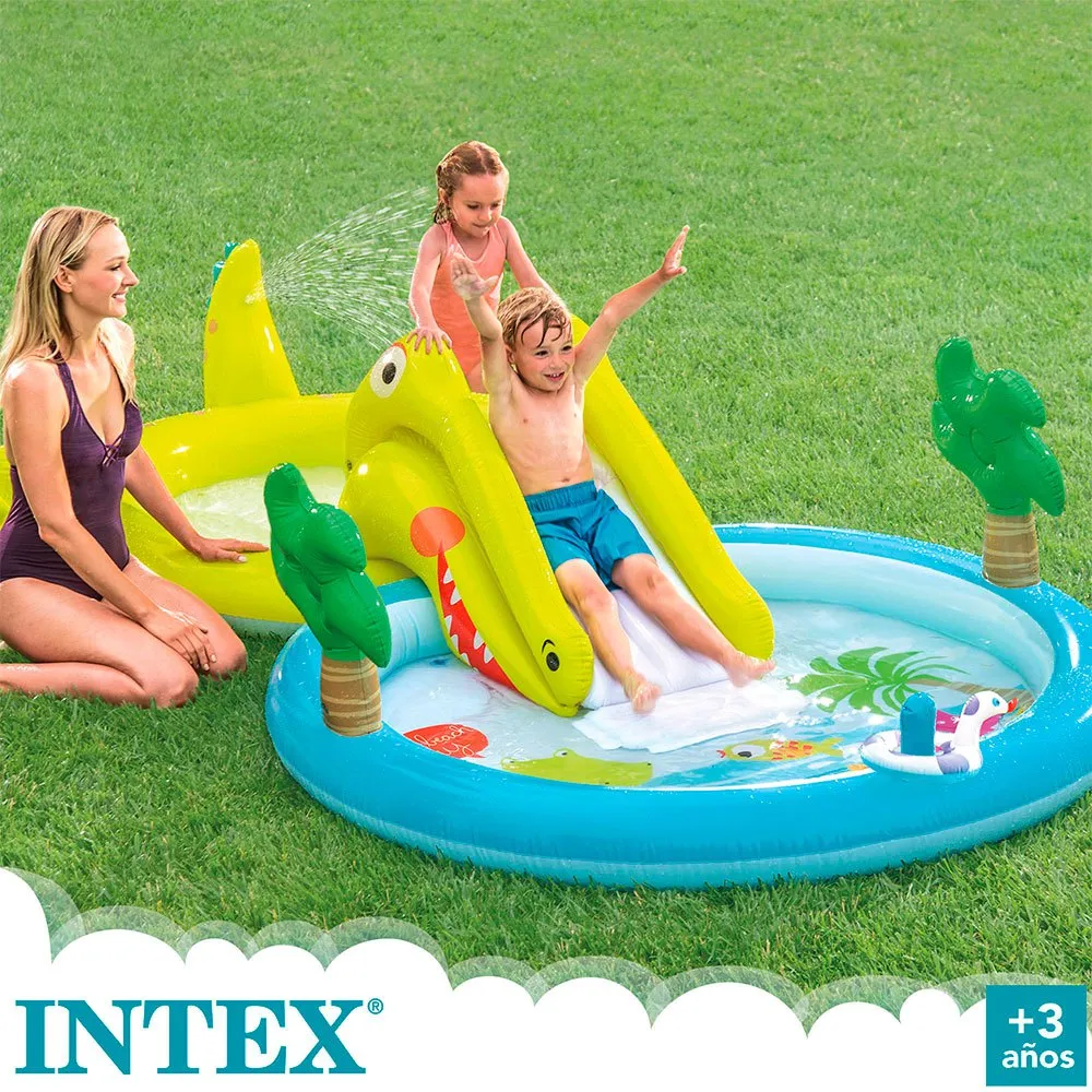 Intex children´s play centre with two swimming pools of 180 and 132 litres respectively and a crocodile slide with cushioned base.