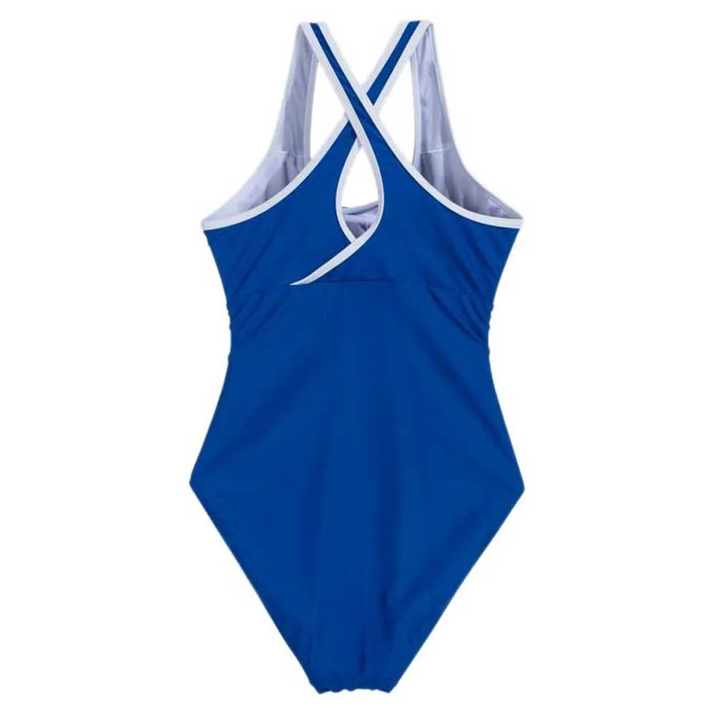 Swimsuit with crossed straps in the back. Incorporates front lining and chest protector.