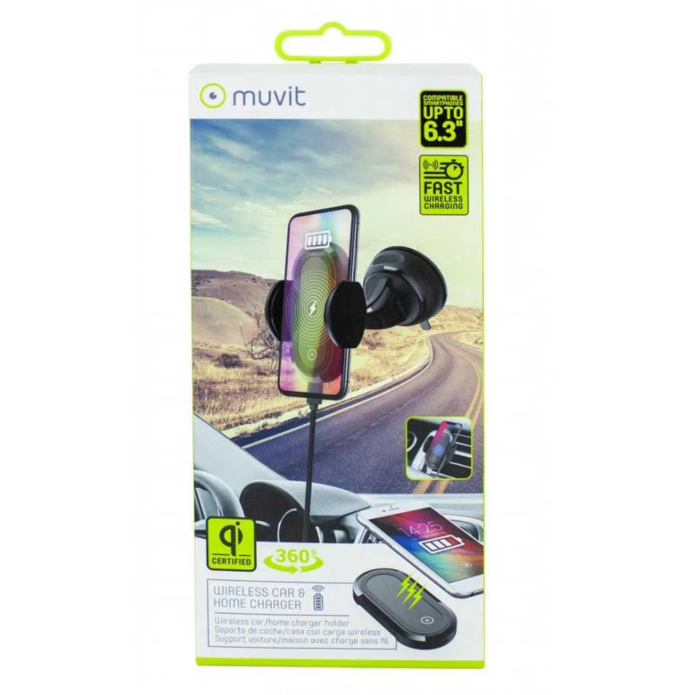 The new car holder with wireless charging Qi, is a versatile product that you can use in the car, the windshield holder, dashboard or grille air, and also with Click and Go function, you can take it home to continue to enjoy where you are wireless charging.