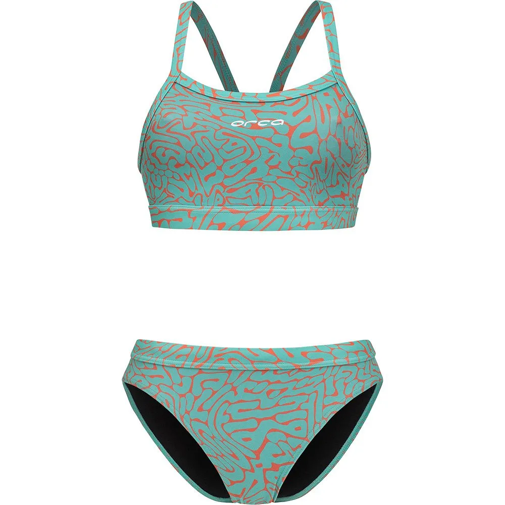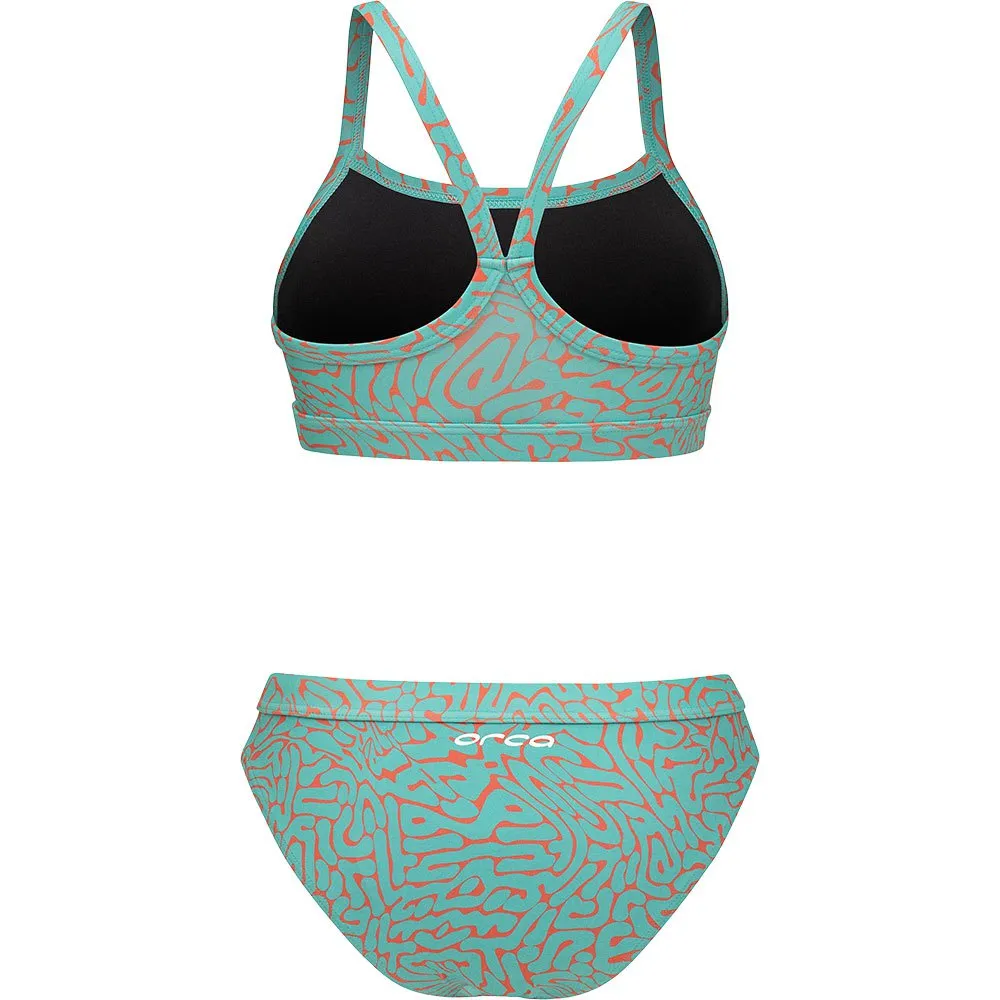 This two-piece swimsuit with wide straps is made with a compressive fabric for added support and comfort while swimming in the pool or in open water.