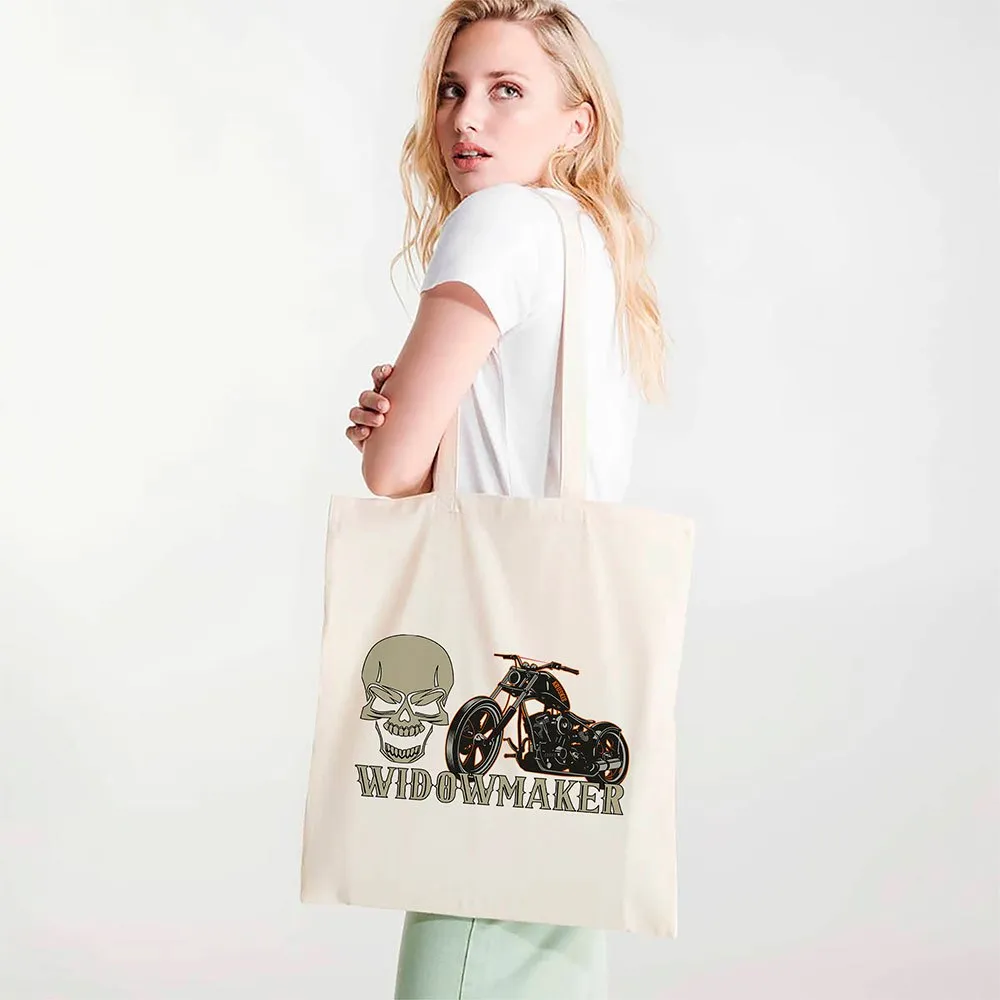 Tote bag made of cotton fabric in natural colour, with long handles in same colour tone.