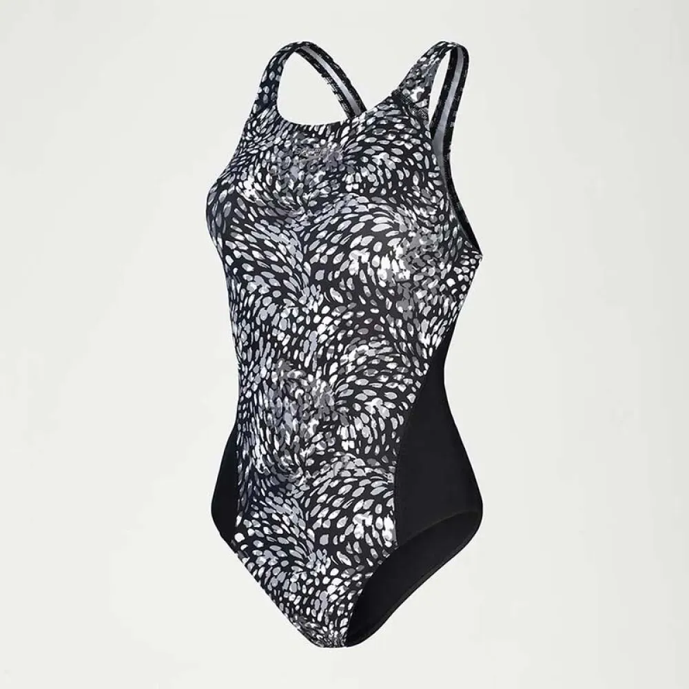 Cut a sleek silhouette during training sessions wearing our striking black and white Recordbreaker swimsuit. Stylish in monochrome, its dynamic print creates the illusion of texture and movement. The Recordbreaker teams a medium leg with an open back and straps that sit between the shoulder blades for improved freedom of movement. A great choice for frequent training sessions, our ECO EnduraFlex fabric offers higher chlorine resistance than standard swimwear fabrics and fits like new for longer with CREORA® HighClo™. Yarns in the suit are made from 100% recycled waste fabric, so it’s better for the environment too.