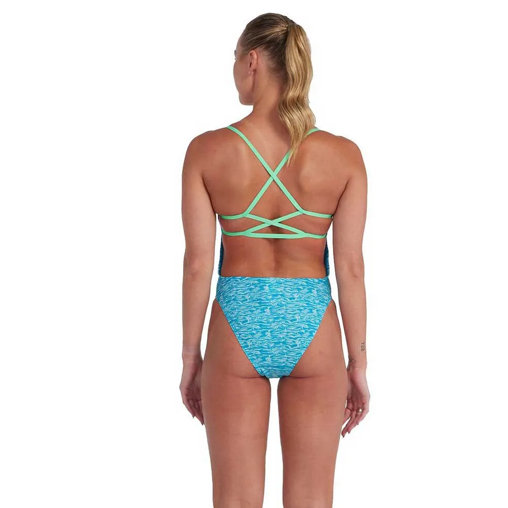 Radiate Calm Whatever Training Throws Your Way, Wearing Our ´Sundown Shores´ New Lattice-Back Swimsuit, Featuring Serene Seas And Exotic Palm Trees. Intricate Strap Detailing Raises The Style Stakes, While A Comfortable Rubber Under-Bust Band Provides Light Support. Not Just A Pretty Face, The Suit Includes An Extra-High Leg For Maximum Freedom Of Movement Across All Swim Strokes. Fully Front Lined In Miami Lilac For Comfort And Modesty During Your Swim. Designed To Be Durable And Better For The Environment, The Lattice-Back Is Made From Our Eco Endurance+ Fabric, Which Is 100% Chlorine Resistant, Quick-Drying And Made Using 50% Recycled Materials.