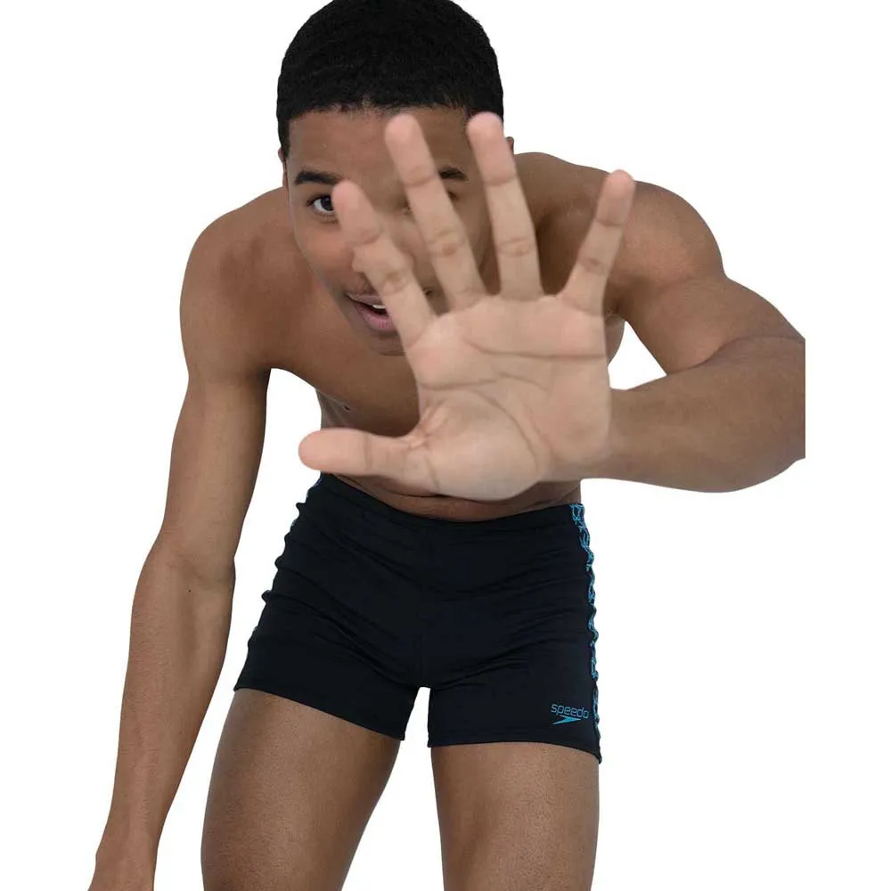 Celebrating the iconic Speedo branding, this aquashort in classic navy features side panels printed with our new Boomstar print in blue. A drawstring waist provides comfort and security, while our 100% chlorine resistant, Endurance+ fabric makes this style ideal for everyday swim fitness training.