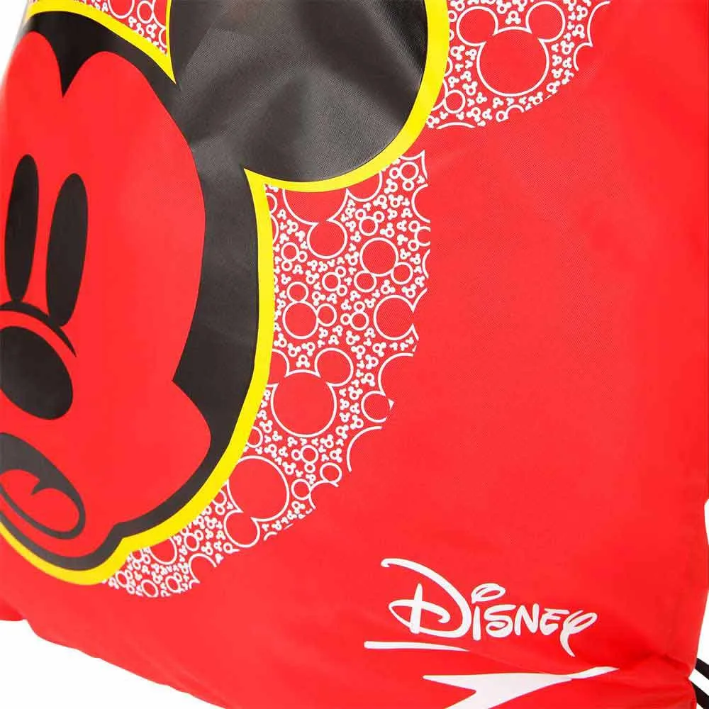 Drawstring bag with Mickey Mouse character print.
