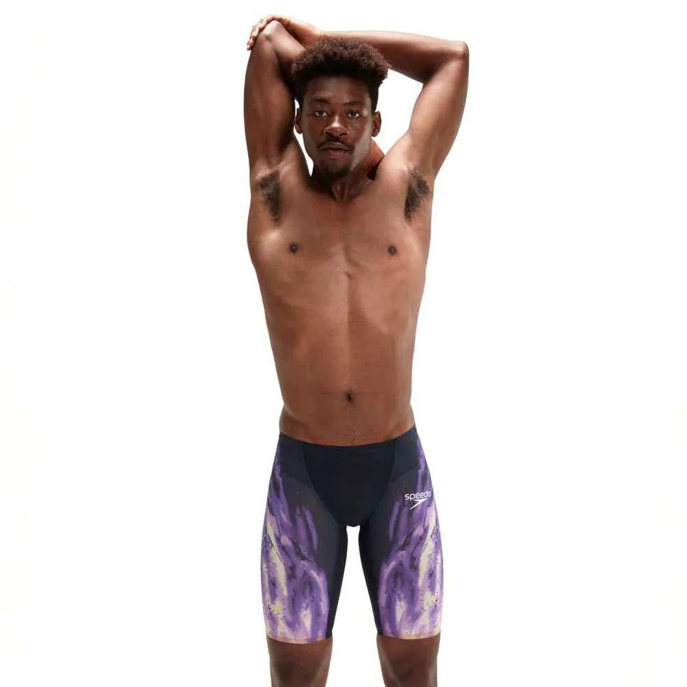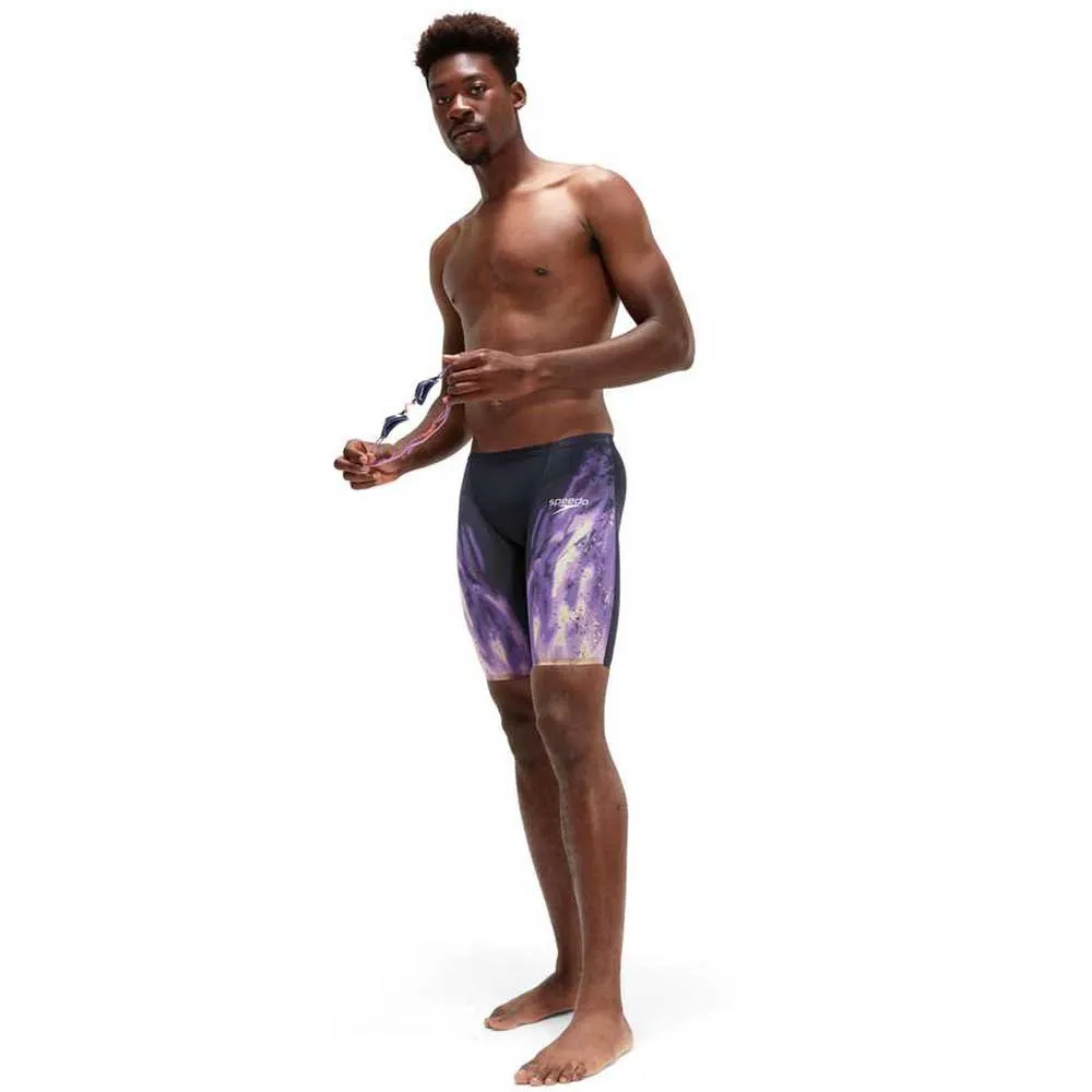 Feel unstoppable wearing Speedo´s latest innovation developed by swimmers for swimmers. The Fastskin LZR Pure Valor ´Cosmic Storm´ Jammer is made from lightweight material and features moderate compression and construction designed to support a greater range of movement. The compressive inner leg seam is designed for greater muscle support so you get the best out of your swim. The regular waist jammer style offers greater flexibility and may be preferred by breaststroke and IM swimmers. This product has been fully approved by FINA.