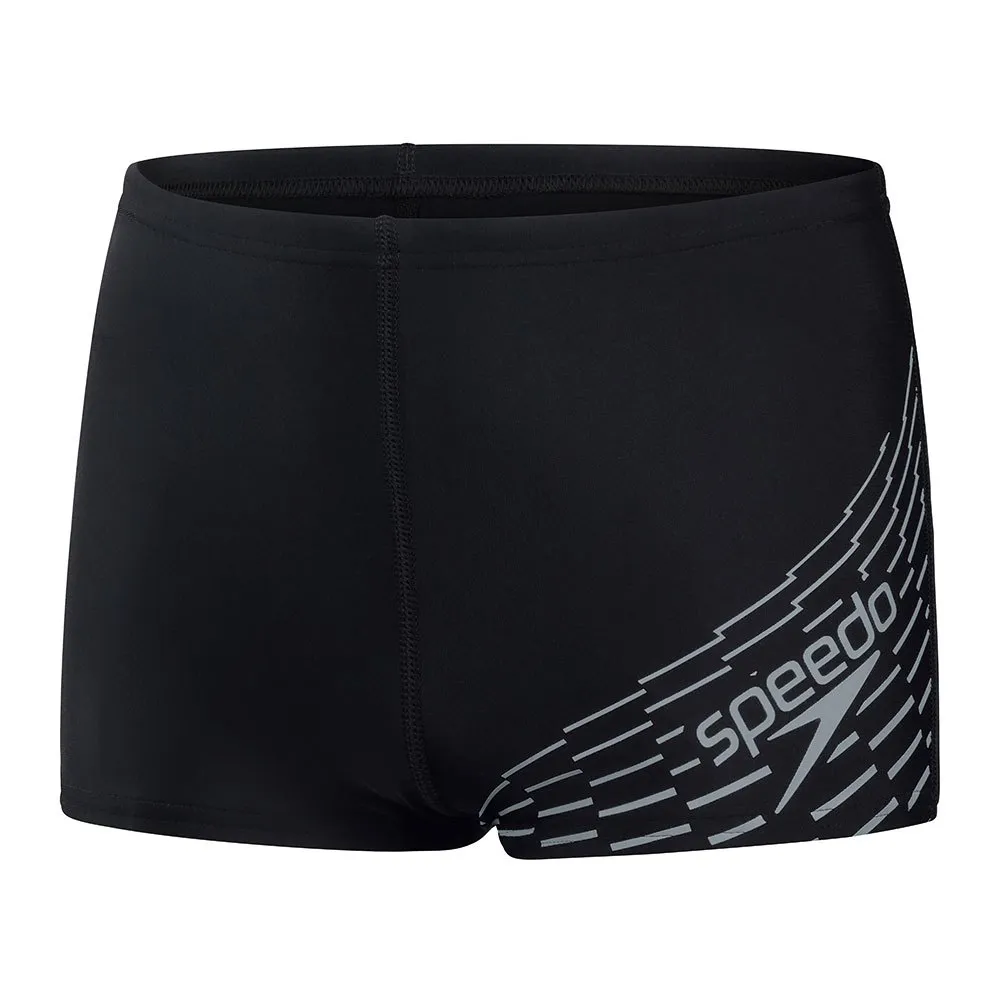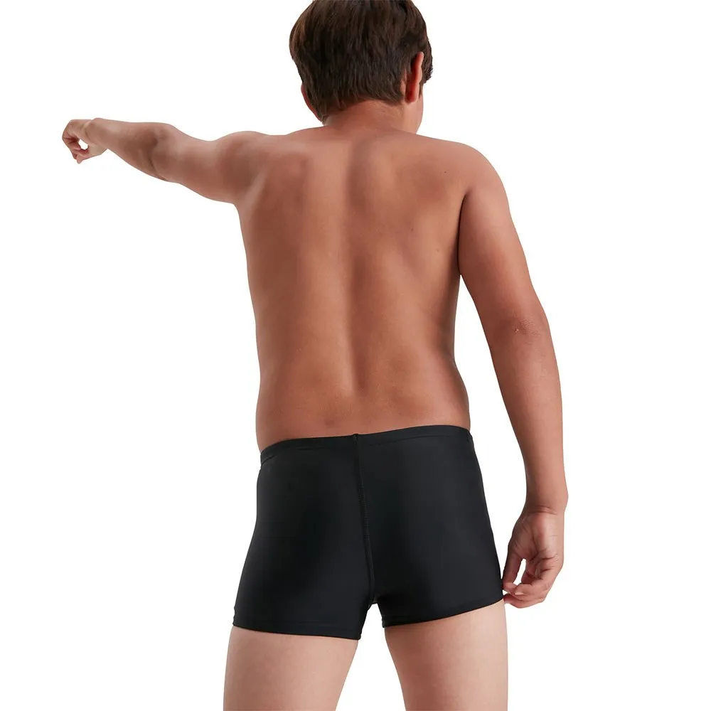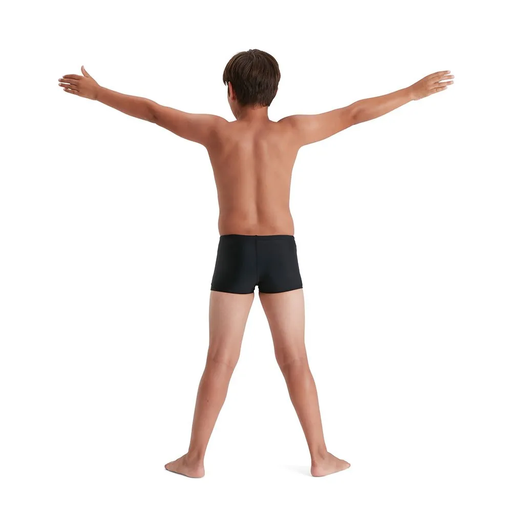 The sporty style includes a subtle kinetic wave print design and an internal drawcord which allows young swimmers to adjust the fit.