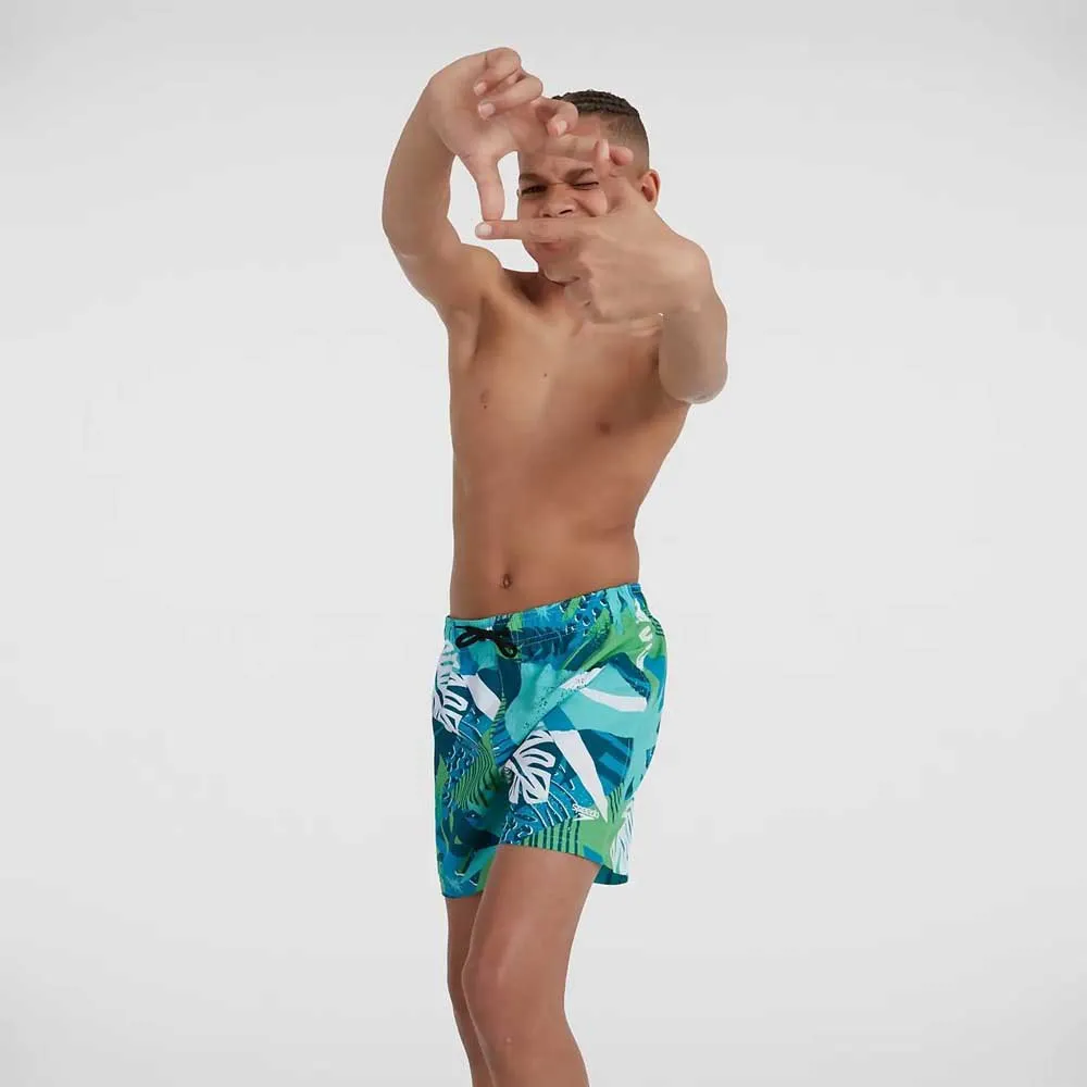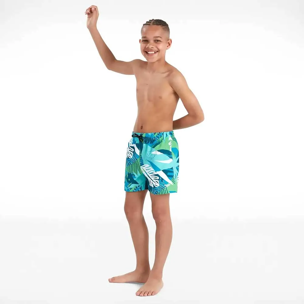 The comfy design includes an inner mesh brief and an elasticated waistband with external drawcord to allow young swimmers to adjust the fit.