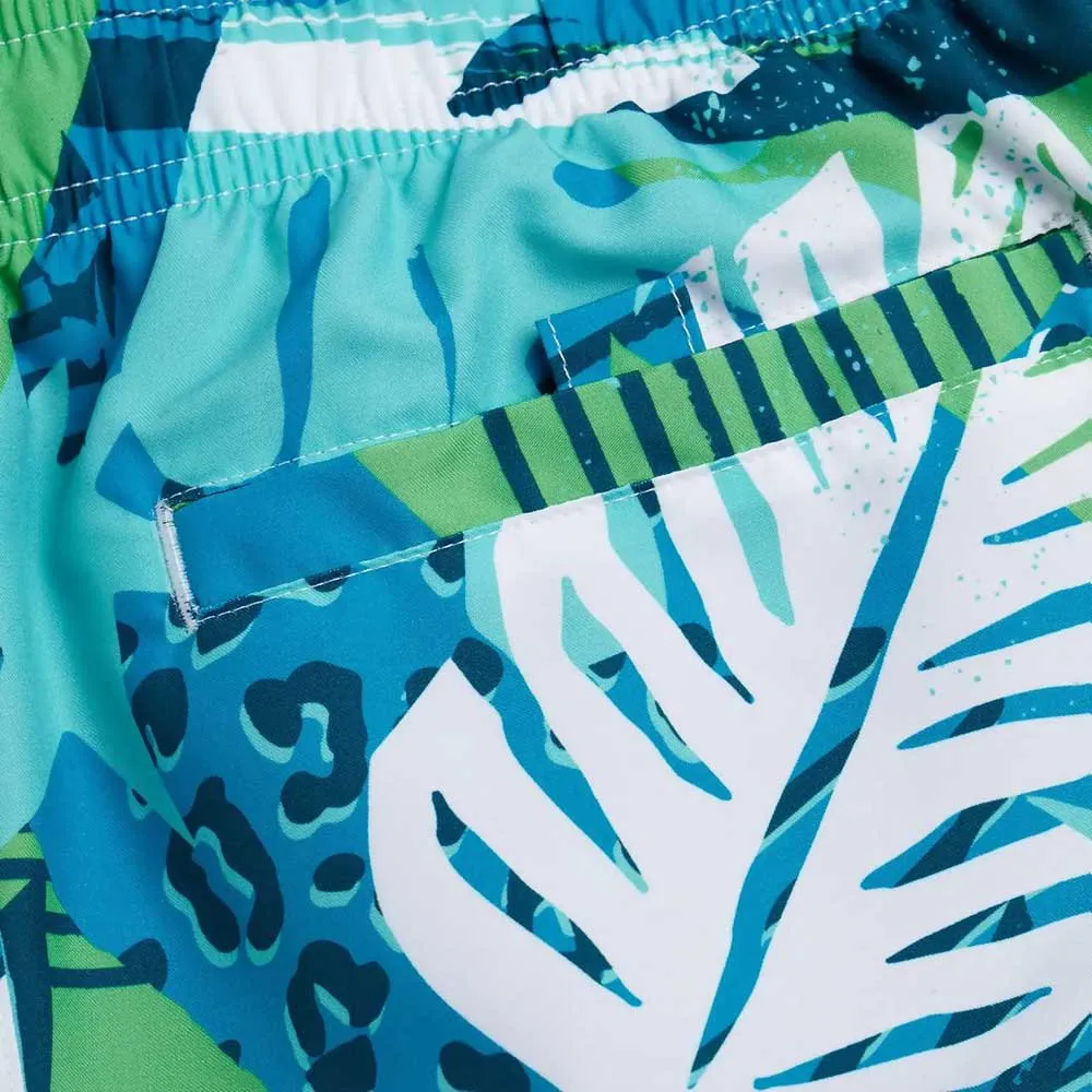 Escape to exotic climates, real or imagined, wearing our 15” watershort, featuring a colourful exotic leaf print.