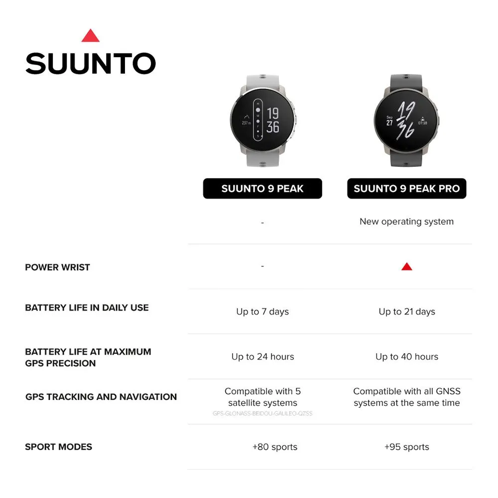 – Suunto 9 Peak Pro is our most powerful multisport watch yet, with astounding battery life and military-grade durability.