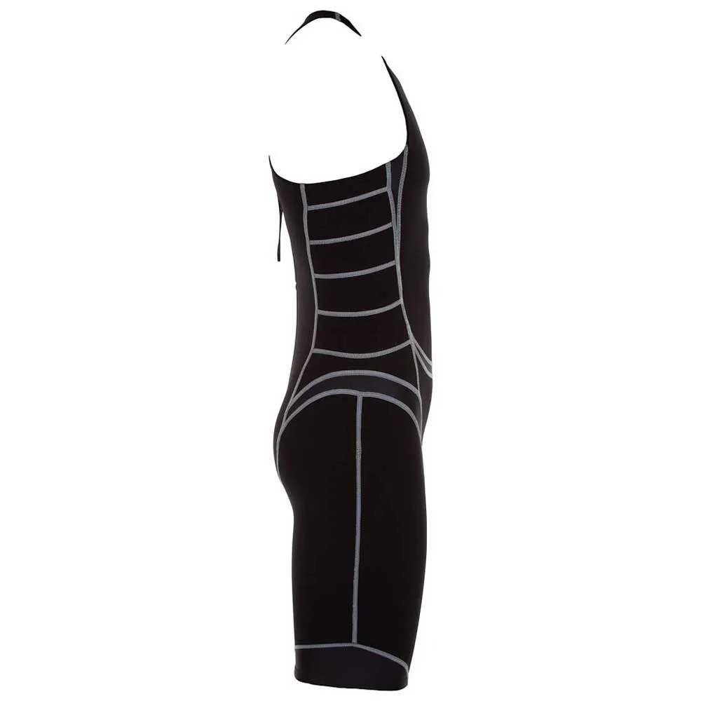 – High density ultra-flat stitches made by special machines, developed to avoid friction against the skin by the inner side of the garment and improve hydrodynamics by the outer side. Elastic stitching which keeps a non-deformable pattern of the garment at any time, perfectly fitting to the body in order to avoid air pockets between the fabric and the skin inside the water.