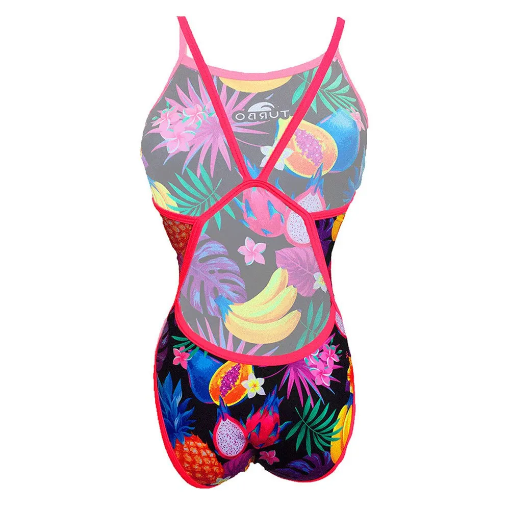 This Turbo suit is specially designed for Swimming. The thin straps provide total freedom of movement and flexibility, adapting perfectly to the woman´s body. It covers less part of the shoulder than the wide strap, avoiding contrast of skin tones due to sun exposure. This suit is made with the best fabric on the market with a double front lining. It is resistant to chlorine from the pool and to UV rays. And for this reason, the intensity of its colors will remain inalterable with the passage of time.