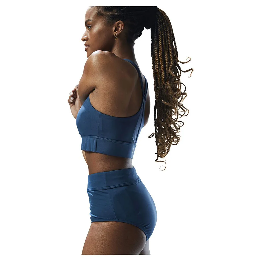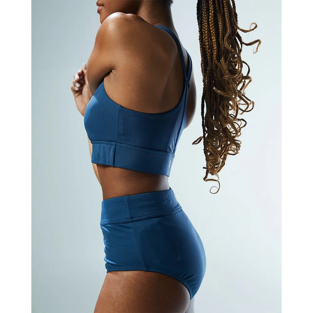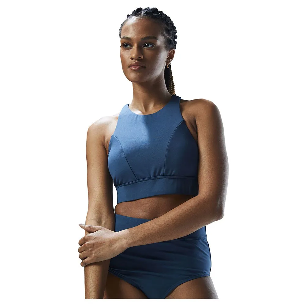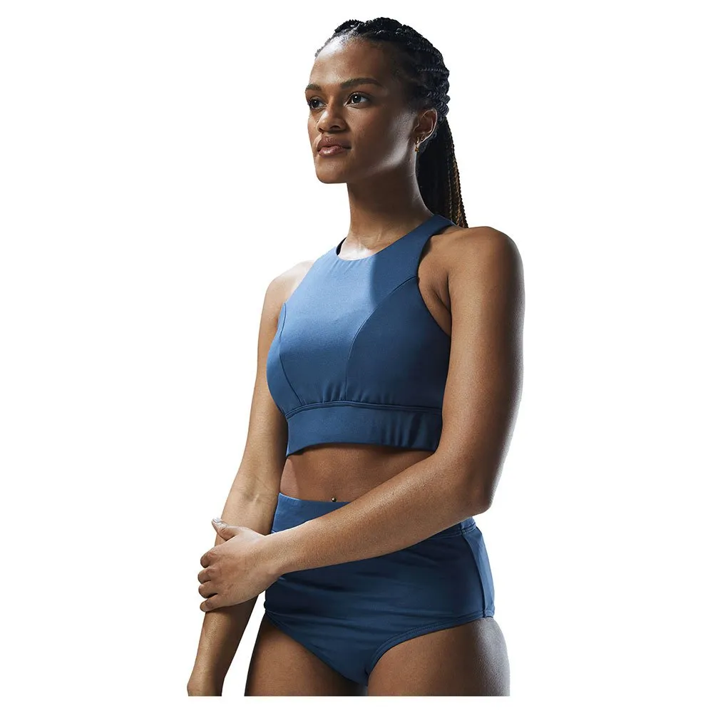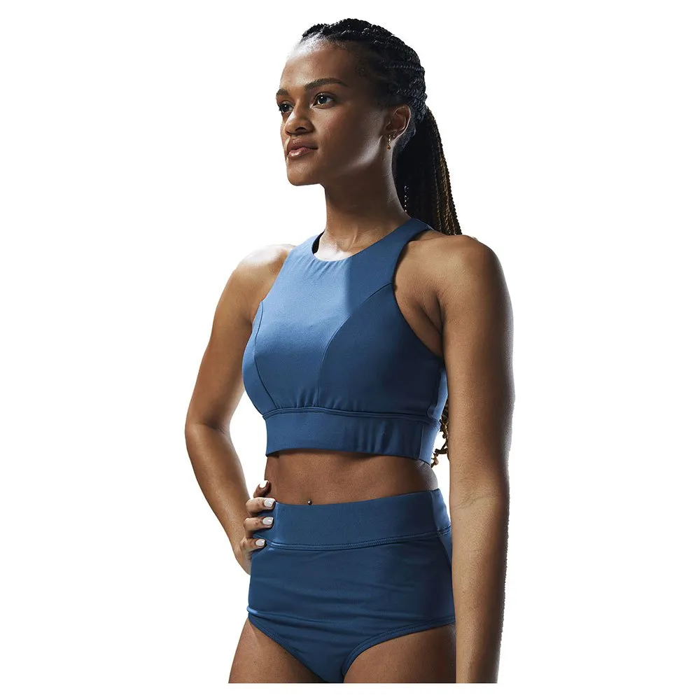 With a high neck for maximum support, removeable cups and a full coverage band, this aquatic sports bra is inspired by women who aren´t afraid to sweat it out.