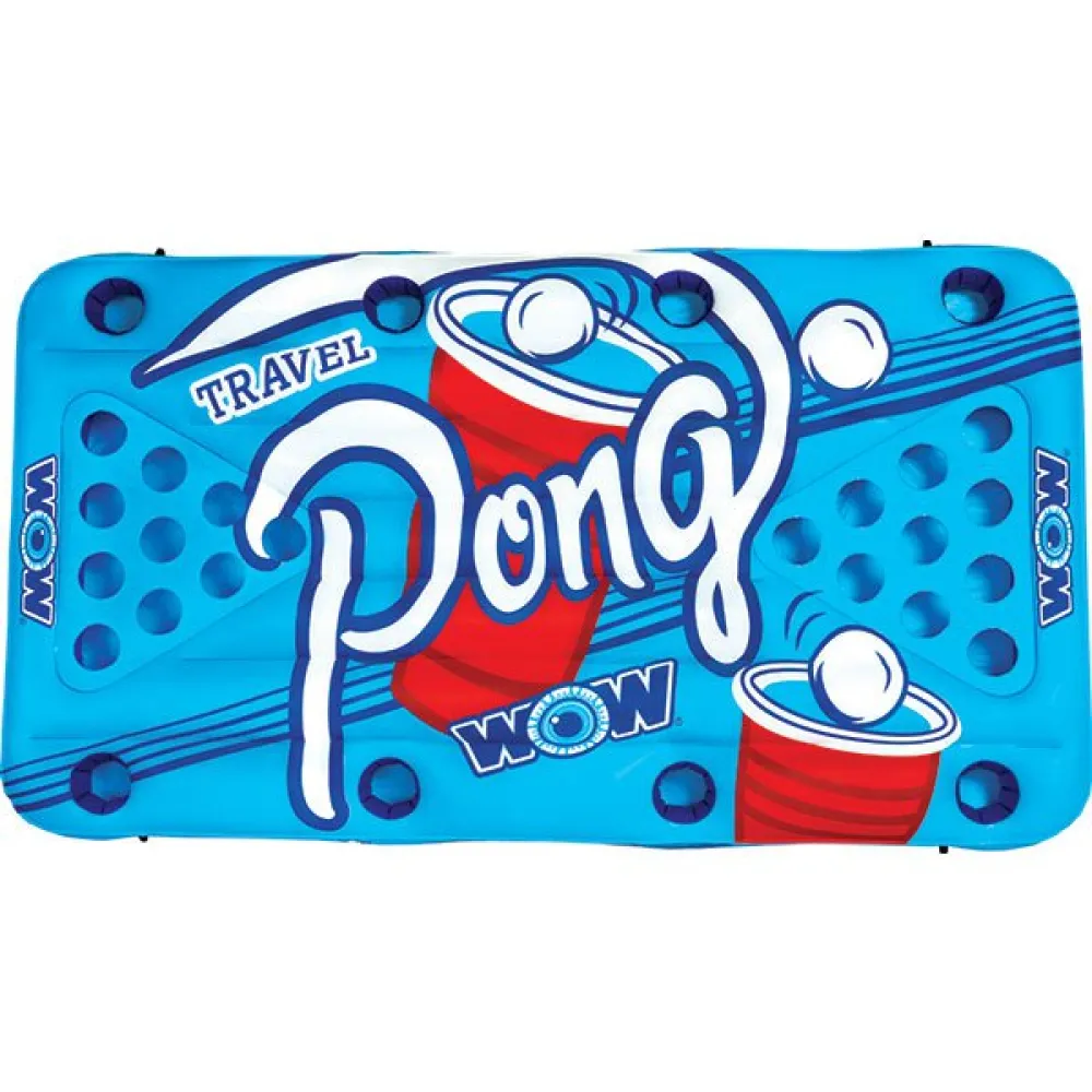 Pong cups and balls are NOT included.Fun portable inflatable wow pong game table that can be played by anyone Includes WOW´s house rules game manual10 Game cup holders on each side 8 Additional cup holders to store extra beveragesCrafted with heavy-gauge PVC with game table graphics4 Molded grommets for tie down points for floating coolers or for dockingGreat for pool beach lake river or even playing indoorsCan double as a pool lake float or air mattressLarge speed valve for fast inflation and deflation1 Person 220lbs.