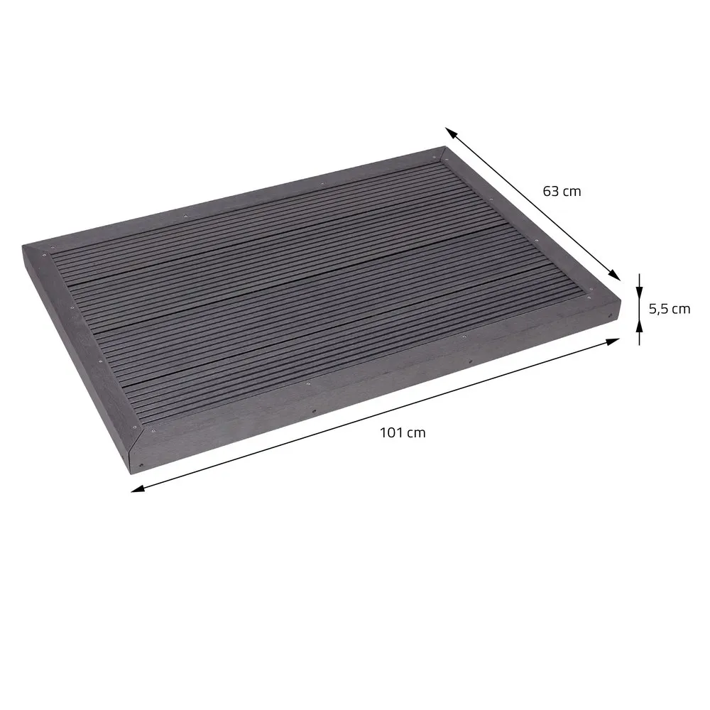 The floor panel for outdoor showers by ECD Germany is perfect if you need a smooth surface for your garden shower. The base is large enough for you to stand under the shower in your garden without stepping on it. The base plate protects your feet from sharp objects that you could not see in the lawn or insects that could sting you, such as wasps. The piece is made of WPC material and is therefore very easy to maintain.