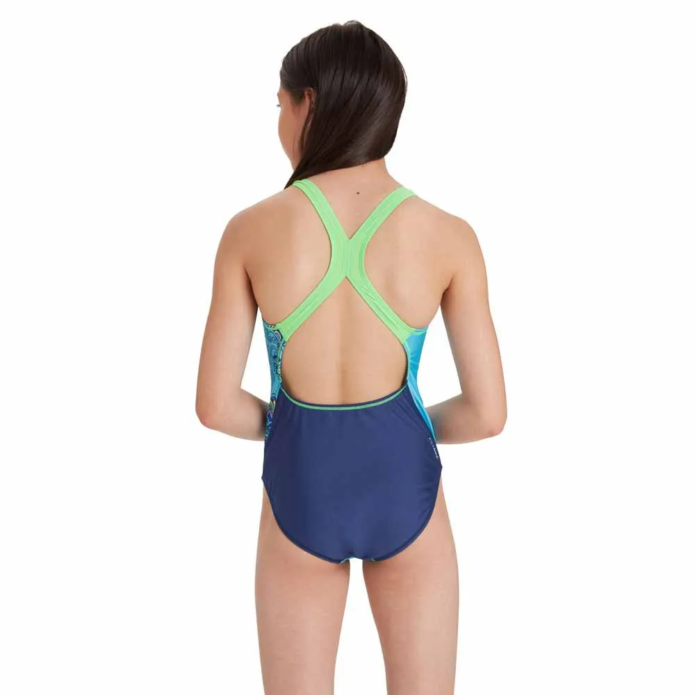 Bright & fun, our Junior Girls Frida Flyback is bound to be a winner. With an open back for superb freedom of movement, this colourful floral placement print swimsuit is perfect for swim lessons or competitive swimming. Featuring our Eco Friendly Ecolast™ fabrication, this swismuit is also chlorine resistant for 250+ pool hours.