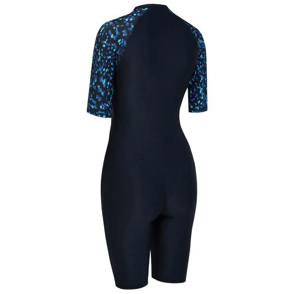 Let Nothing Get In The Way Of Your Swim With Our Jewel Kneesuit. This Short Sleeve, Zip Front Kneesuit Fits Like A Second Skin, Meaning Less Drag And More Speed Up The Lanes Or In The Ocean. With Removable Cups And A Shelf Bra, You Decide On The Best Fit For This Knee Suit. Made With Stretchy Elastomax Fabric And A Zip Front, This Swimsuit Is Easy To Get On And Off. Perfect Swimsuit For Extra Protection When Swimming In The Sea With Its Upf50+ Sun Protection.
