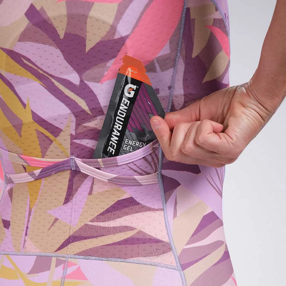 With NEW FEATURES for 2022 including internal ice and fuel pockets, the LTD Tri Aero Full Zip Racesuit promises to deliver on race day! Updated in 2022 with longer, more aerodynamic set in sleeves that reduce wrinkles to increase speed. The dimpled structure of Vento Aero fabric is placed in critical areas of the garment to reduce the vortex of air which is generated behind the athlete and, consequently, reduces drag and saves watts. The full zip design allows for quick and easy pit stops.