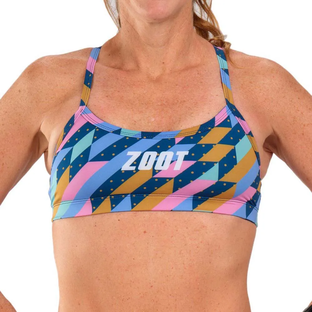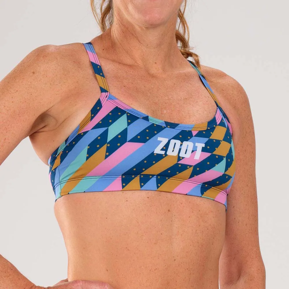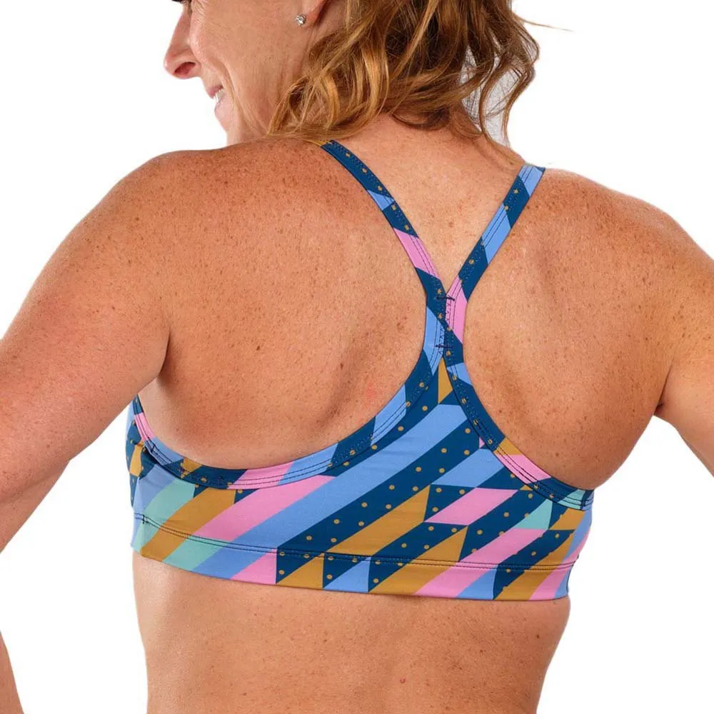 Bring triathlon style to your training sessions with this flattering bikini top, in a bold print. This Y-back bikini topis cut from fabricthat isdesigned to resist the damage from chlorine, sunlight and the pool deck.