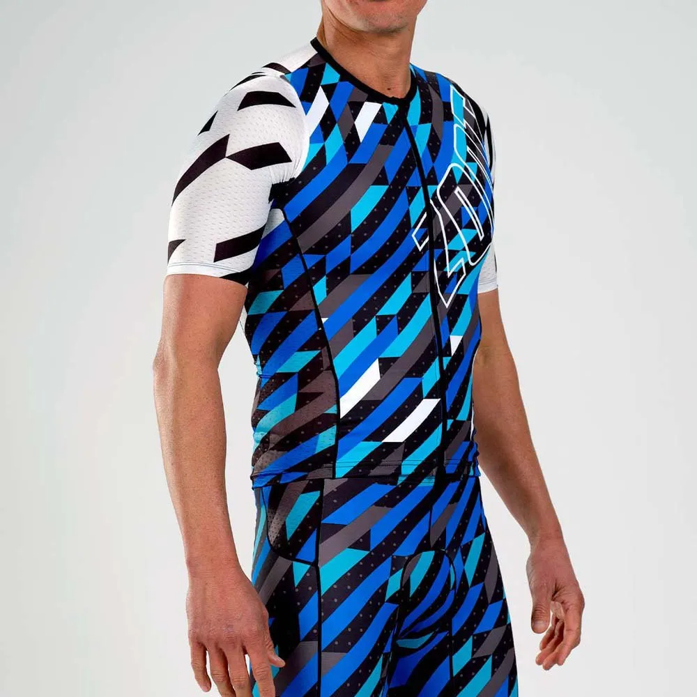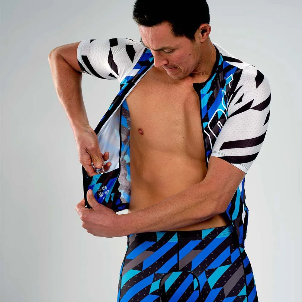 The convenience of a two-piece kit with all the aerodynamic advantages of a one piece, the men´s Tri Aero Jersey is a dynamic powerhouse. Essential nutrition pockets along innovative ice storage pockets make this top race-ready. Long aerodynamic set in sleeves reduce wrinkles to increase speed. The dimpled structure of Vento fabric is placed in critical areas of the garment to reduce the vortex of air, which is generated behind the athlete and, consequently, reducing drag and saving watts. This triathlon Aero Sleeved Jersey promises to deliver on race day.